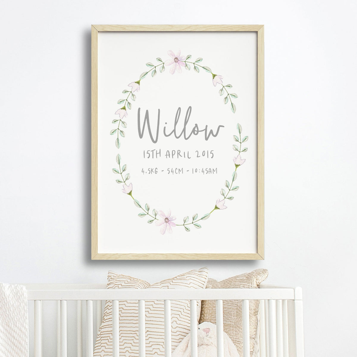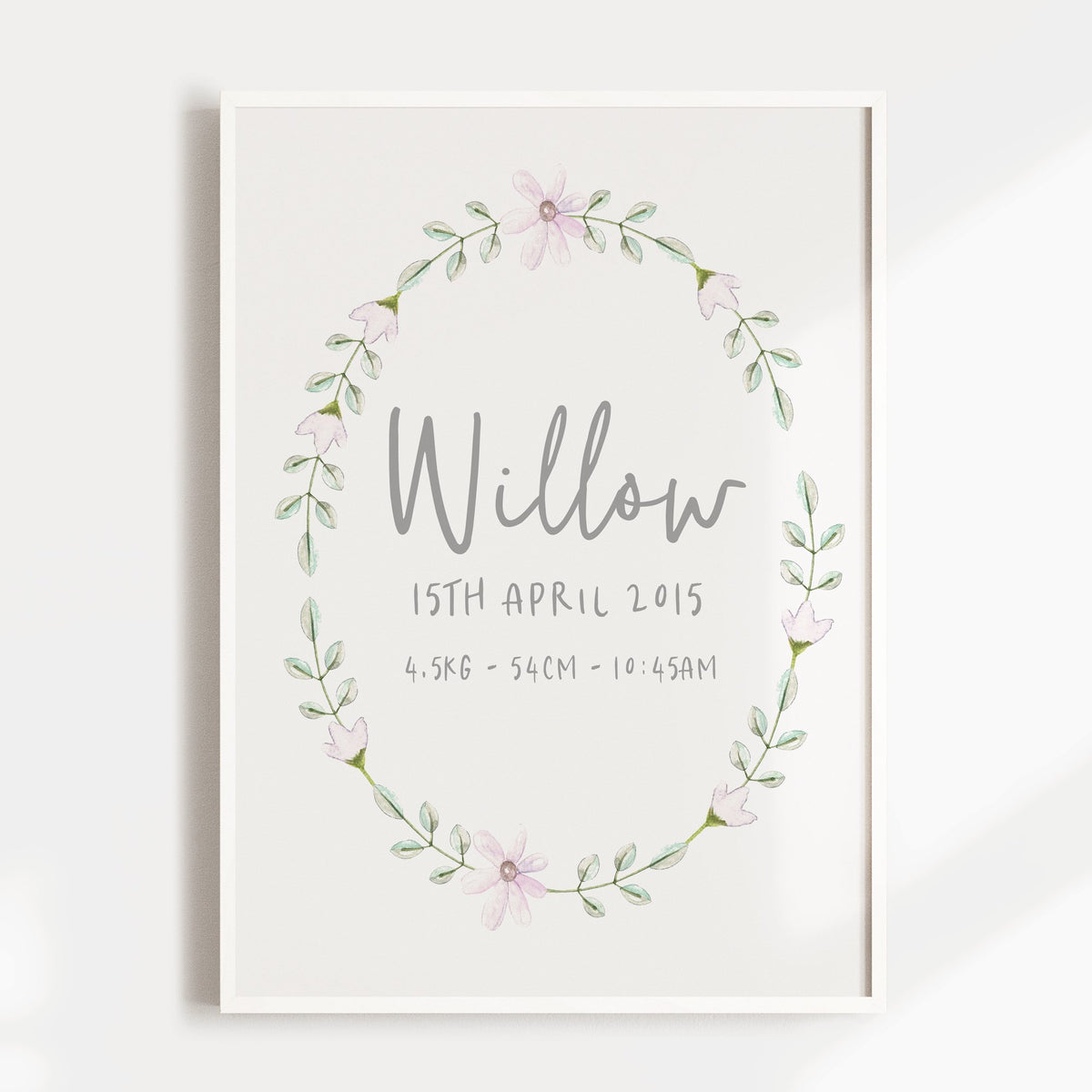 Unit price perLet your little one's special day be forever remembered with this beautiful Floral Woodland Birth Print! Personalised with all the details of her birth, it's a perfect addition to any nursery wall art.