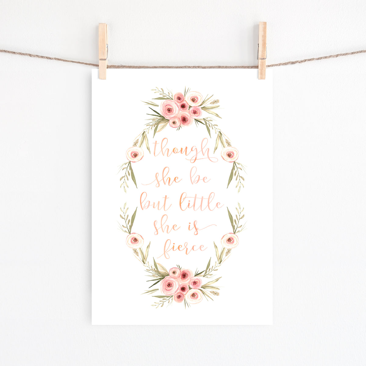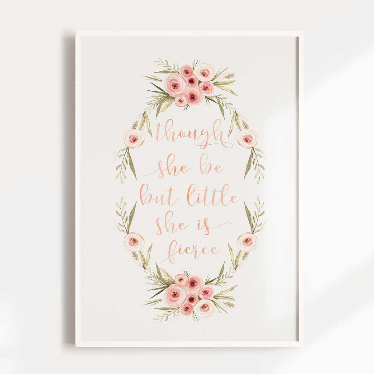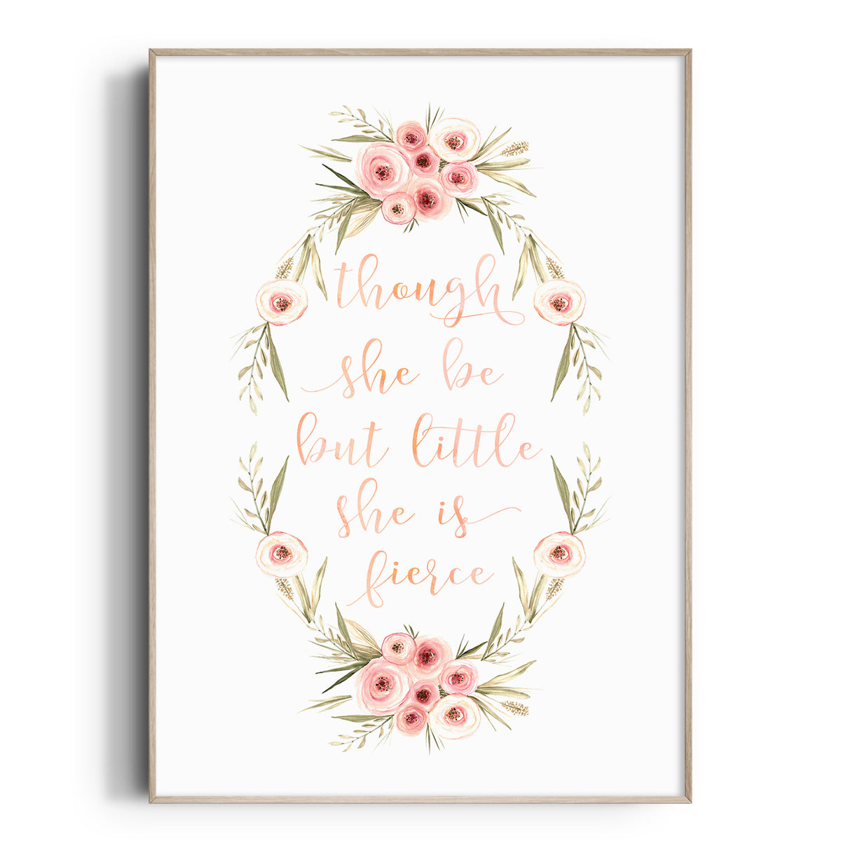 Unit price perA woodland quote art print, featuring highlights of peach and pink flowers and watercolour text.