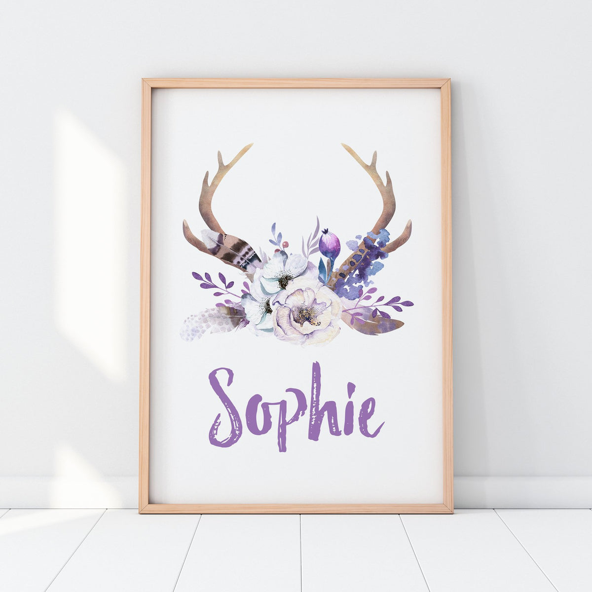 Floral Boho Tribal Antler Name Print