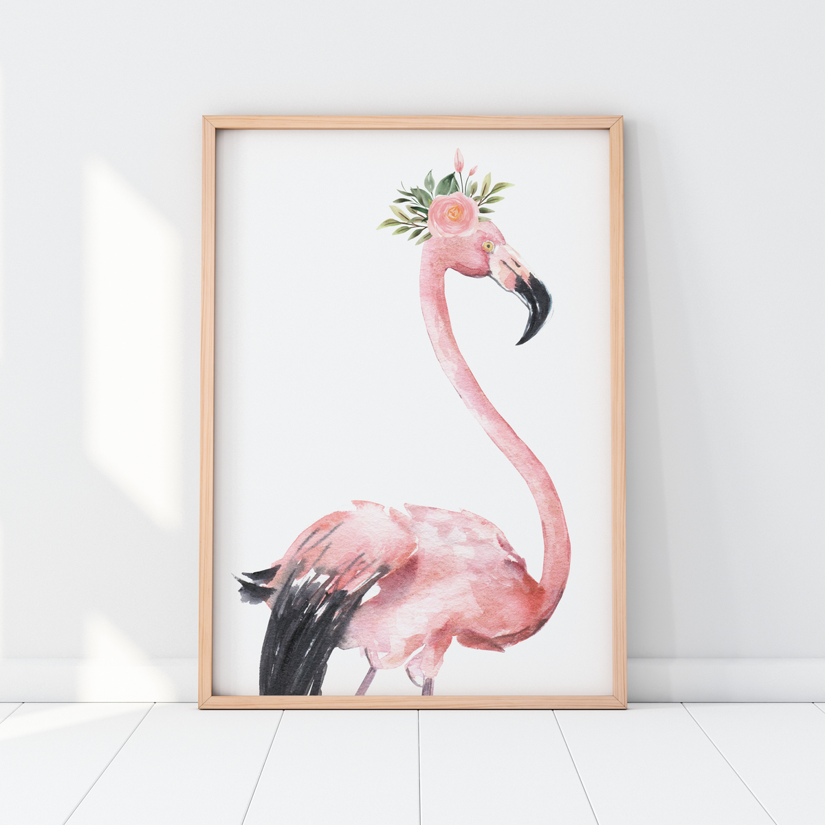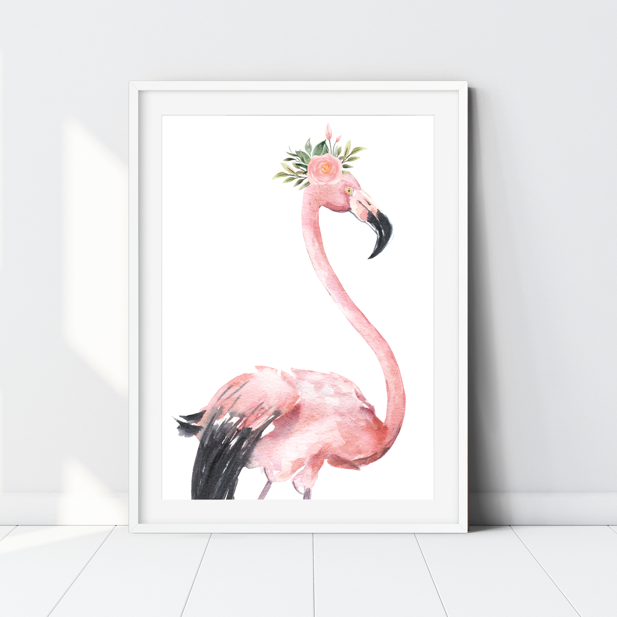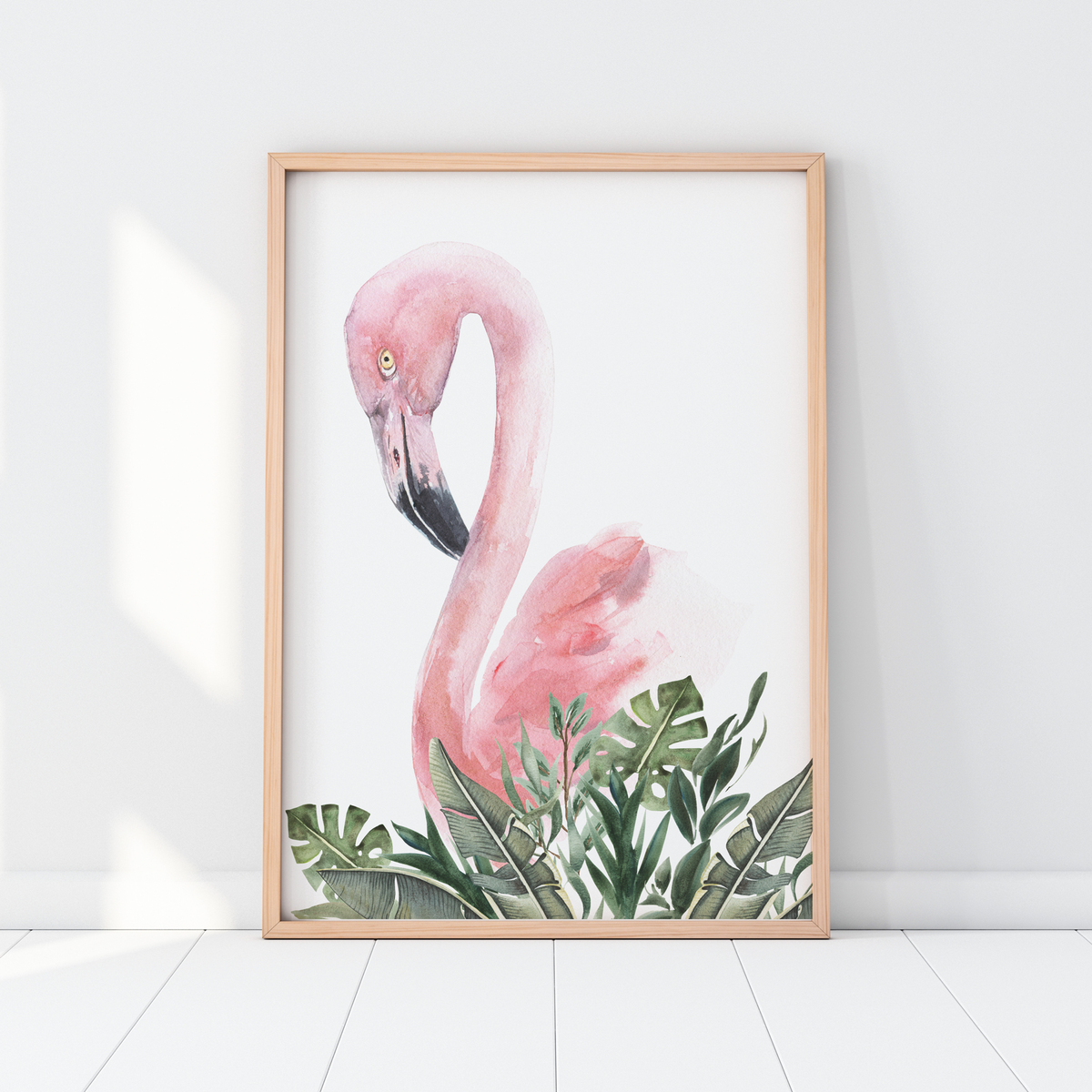 A beautiful addition to your child's nursery or bedroom is this set of 3 watercolour art prints, featuring two tropical flamingos nestled among greenery and a floral embellished letter print.