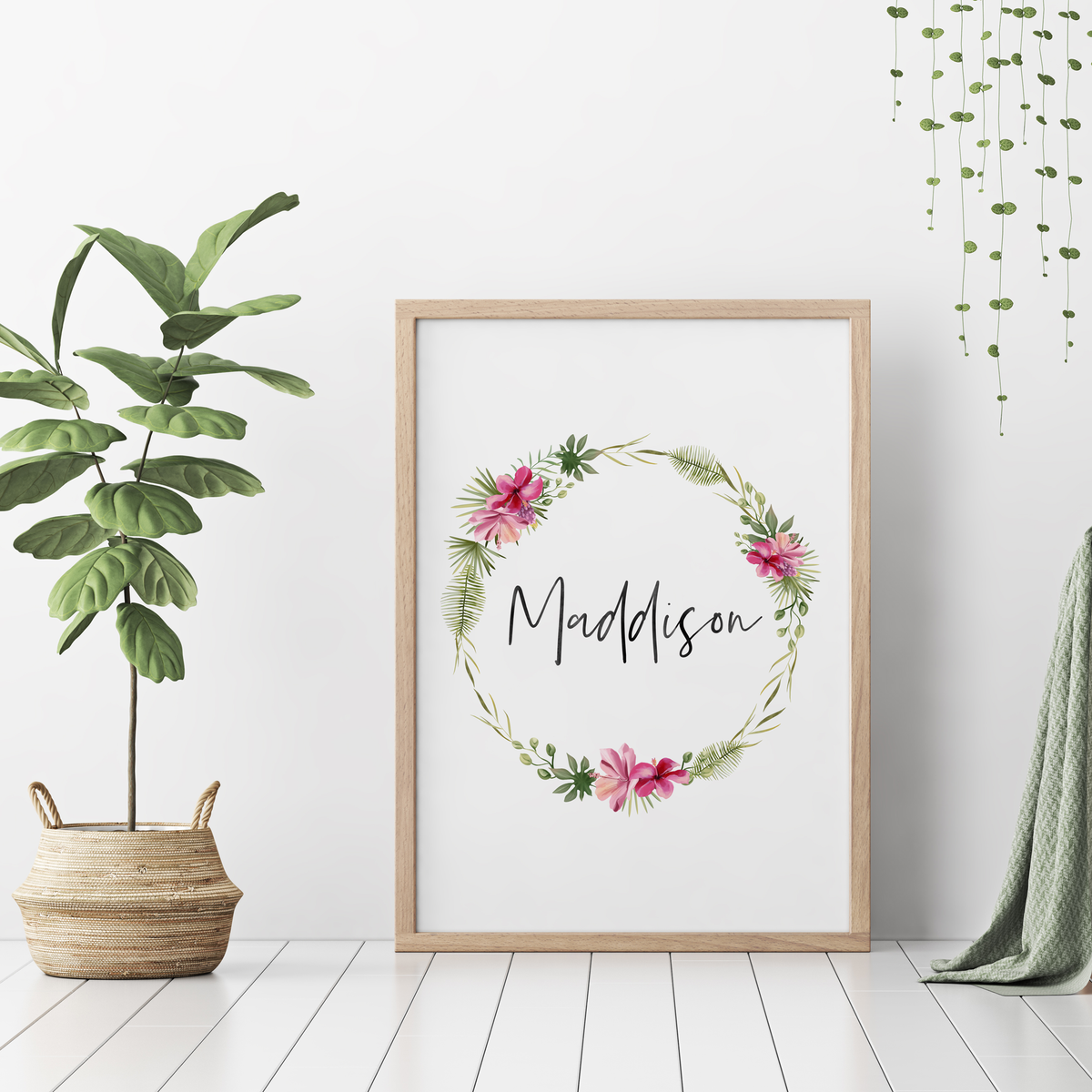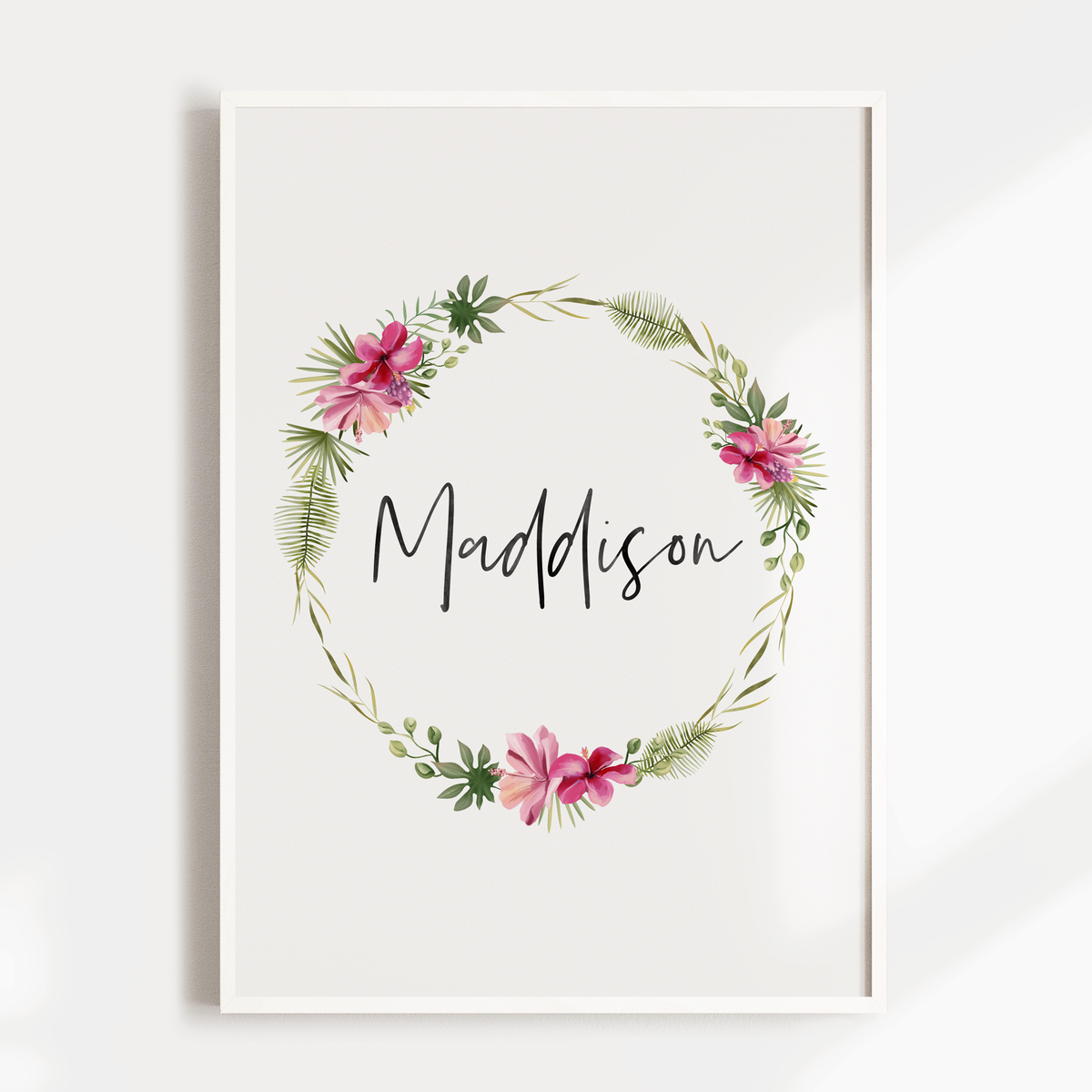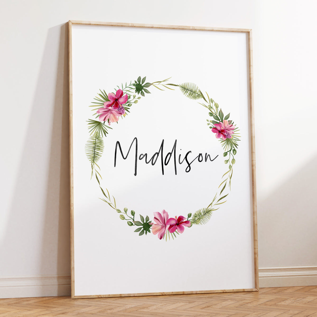 Unit price perOur personalised floral wreath wall art print is perfect for your little girls tropical inspired nursery or bedroom decor.