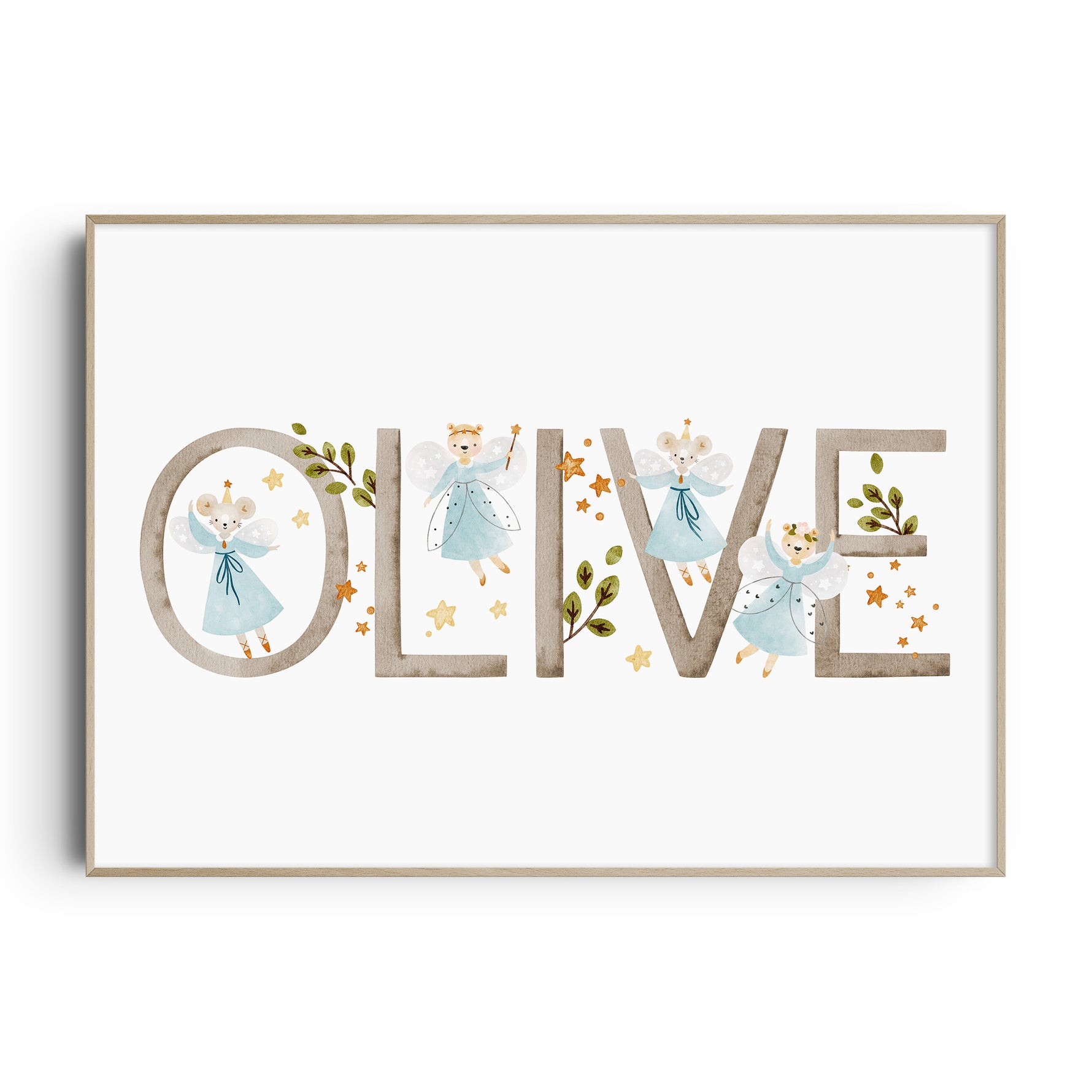 This magical personalised fairy mouse & bear name & birth details print is available with your choice of details. It will make a perfect new baby gift or simply add the finishing touches to your own little girl's nursery, bedroom or playroom decor.