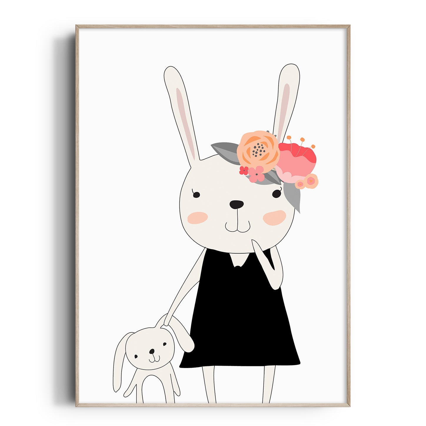 Unit price perOur monochrome floral woodland bunny art print, featuring highlights of peach and pink shades would make the perfect addition to any modern nursery or bedroom décor.