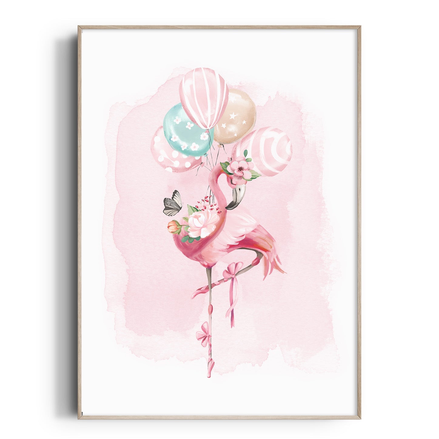 Make a statement with this ballerina wall art print featuring a dancing flamingo with balloons, it can be paired with our other co-ordinating prints and is perfect for any little girls ballet or dance themed nursery, bedroom or playroom decor.