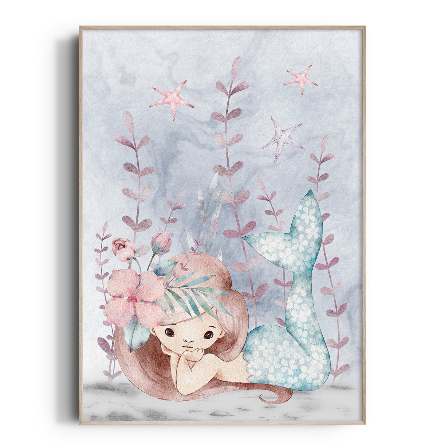 Perfect for the mermaid, ocean or sea themed nursery, bedroom or playroom decor is this watercolour mermaid wall art print, use as a standalone piece or co-ordinate with our other co-ordinating prints.