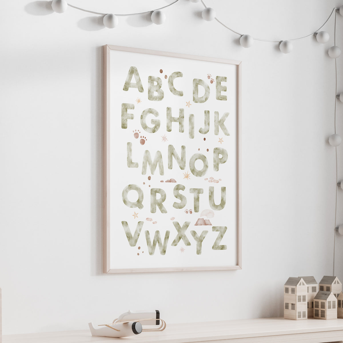 Unit price perThe perfect addition to the prehistoric themed nursery, bedroom or playroom decor is this fun educational dinosaur themed alphabet wall art print.