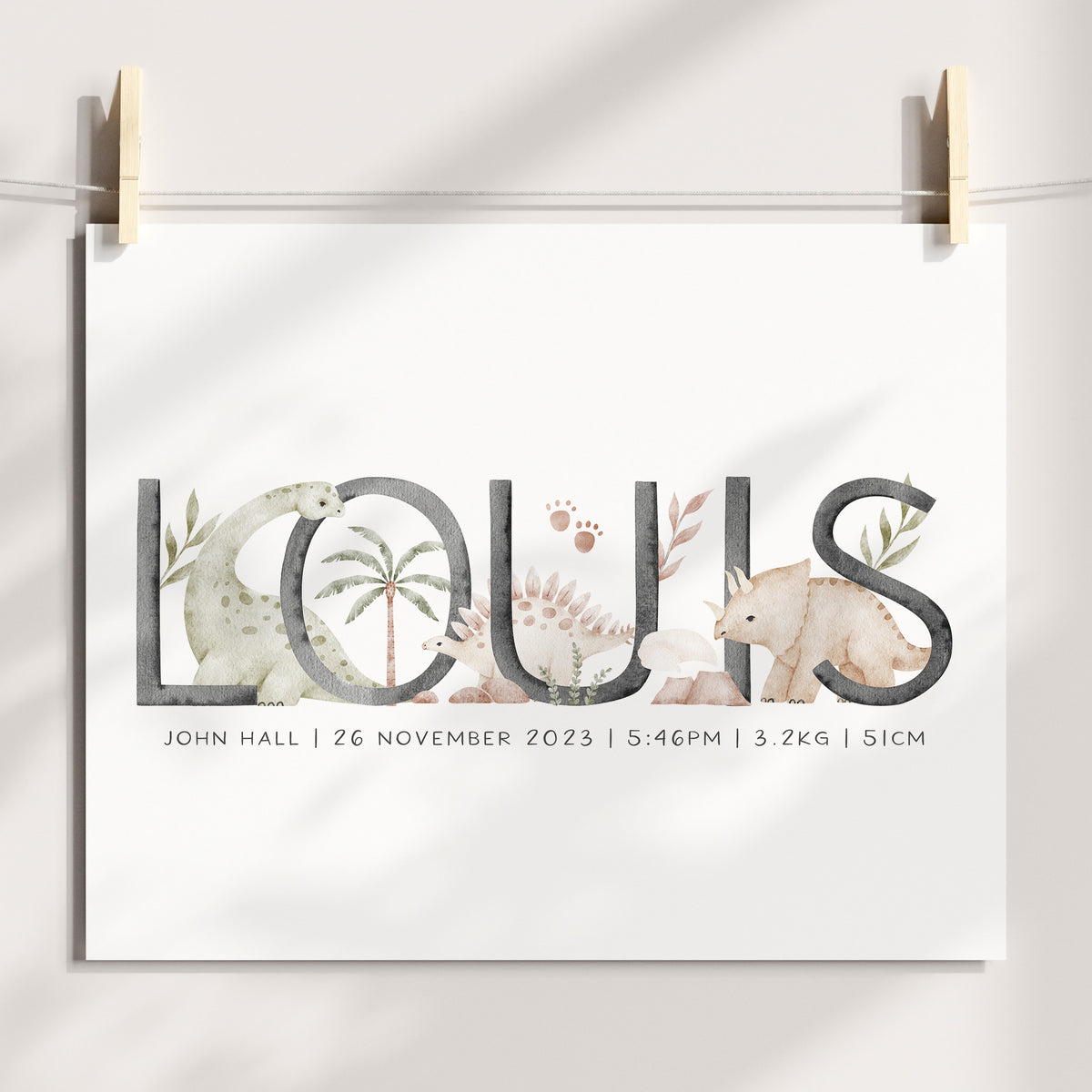 Unit price perPerfect for the dinosaur or Jurassic themed nursery, this personalised baby name print is available with your choice of dinosaurs along with the option to add your little one's birth details, it makes a perfect new baby gift or add the finishing touches to your own little boy's room.