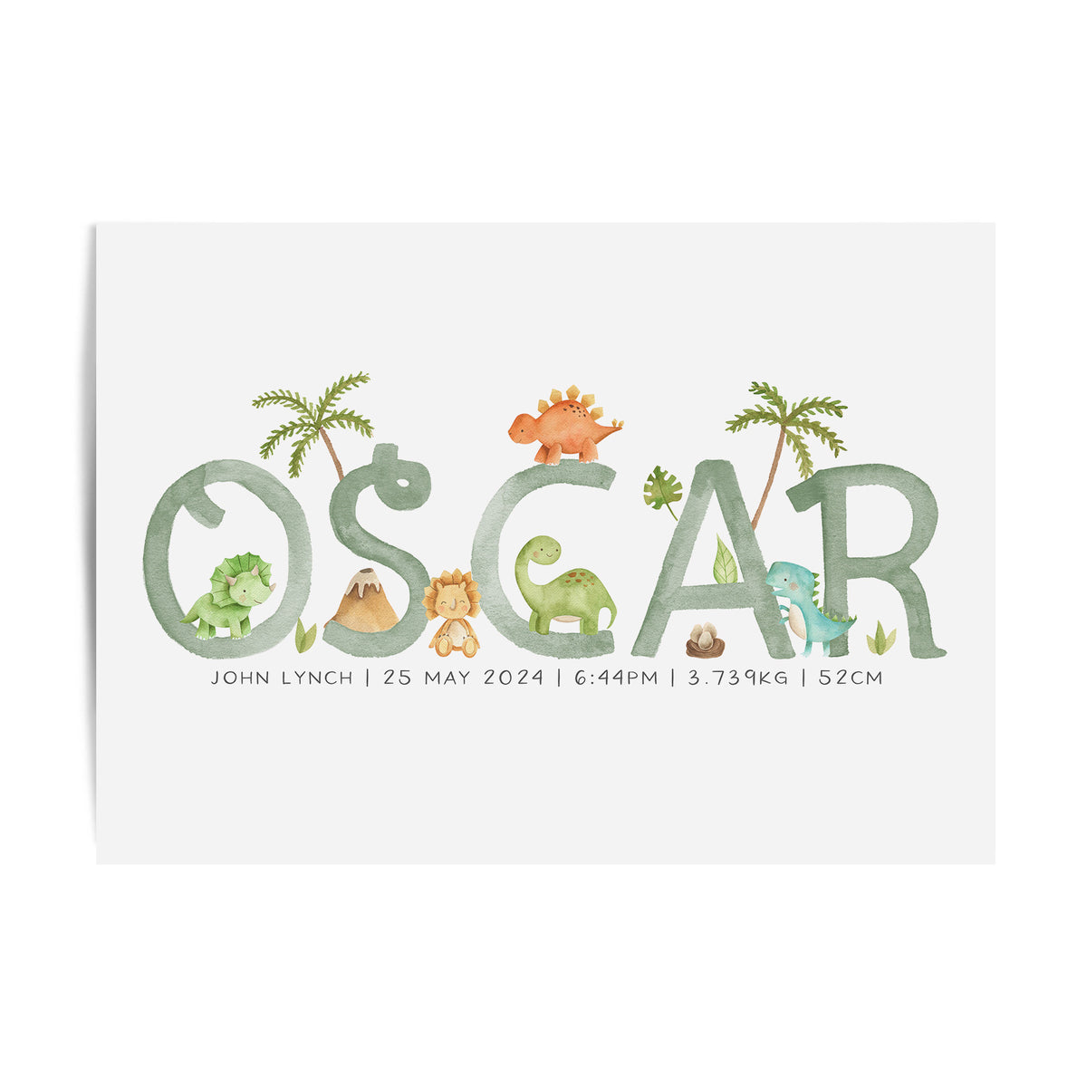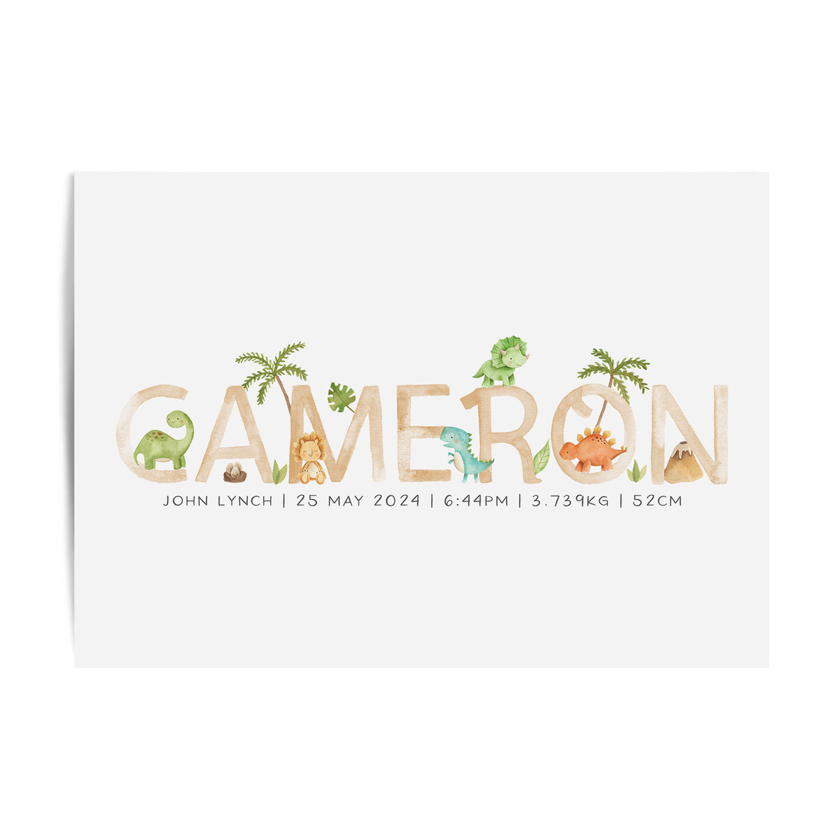 Unit price perPerfect for the dinosaur or Jurassic themed nursery, this personalised baby name print is available with the option to add your little one's birth details, it makes a perfect new baby gift or add the finishing touches to your own little boy's room.