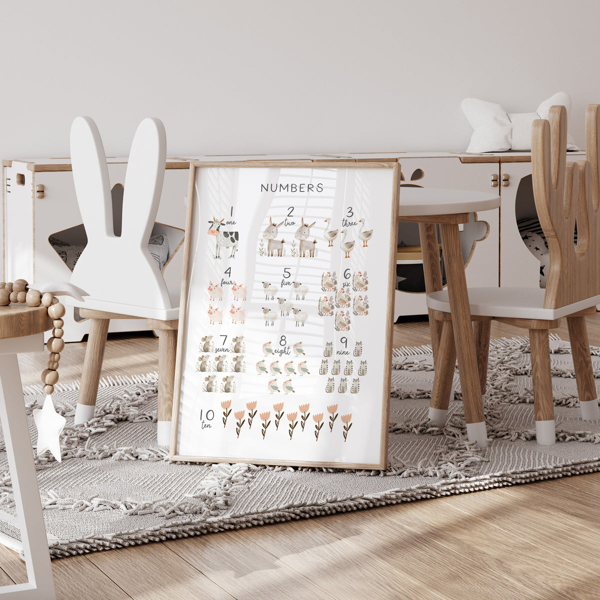 Unit price perThis Farm Numbers Print Nursery Wall Art is the ideal way to brighten up your little one's bedroom, playroom or nursery! The playful design features a delightful array of farm animals and objects to help your child learn their numbers in a fun and friendly way.