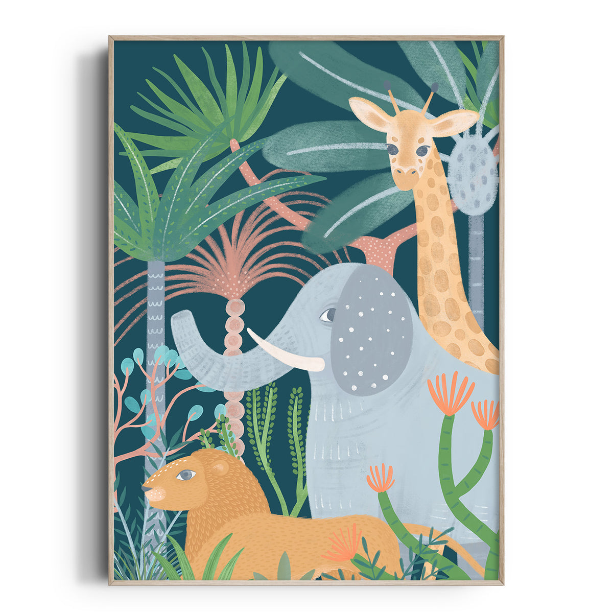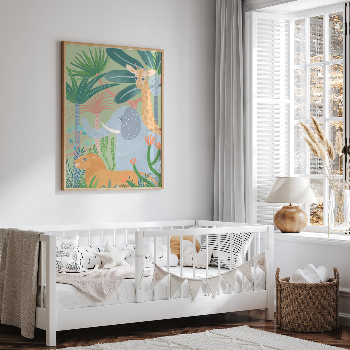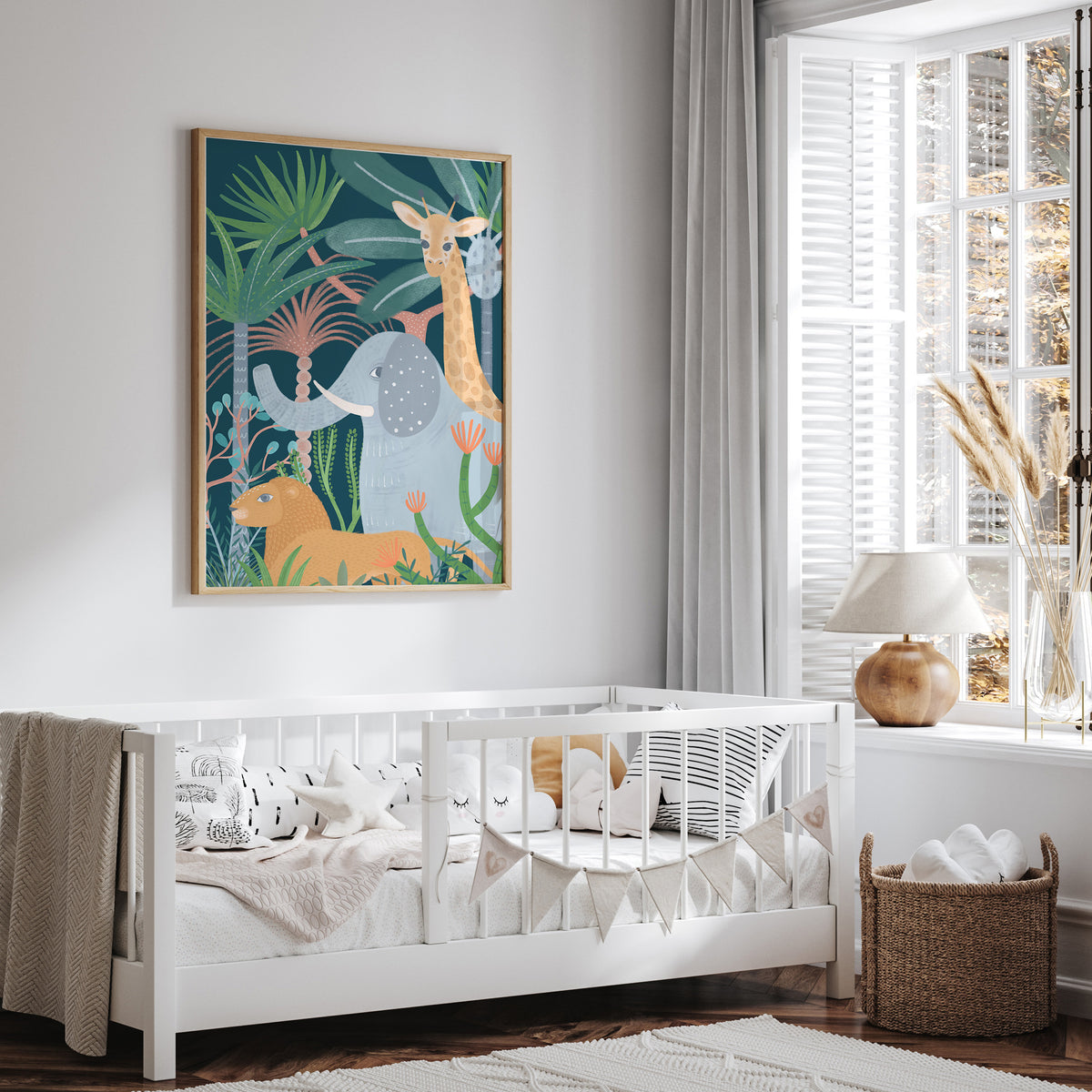 Unit price perLet your little ones be taken to the wild side with this captivating Jungle & Safari Animal Collage wall art print. Featuring vibrant jungle and safari animals on this premium wall art, this is sure to bring life to any nursery, bedroom or playroom area.