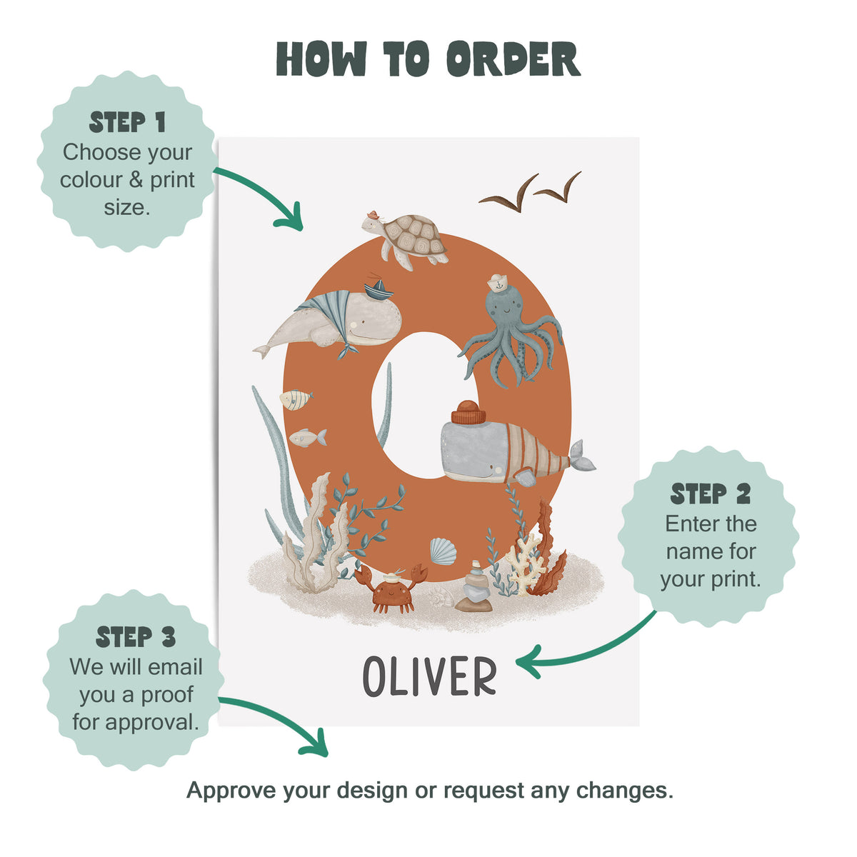 Unit price perAdd a splash of whimsy to your child's nursery with our personalised Sea Animals Name & Letter Print. Featuring charming sea creatures, and available in 5 different colours, this nursery wall art will bring a touch of the ocean to any room. Playful and unique, this print is the perfect addition to any kids' space.