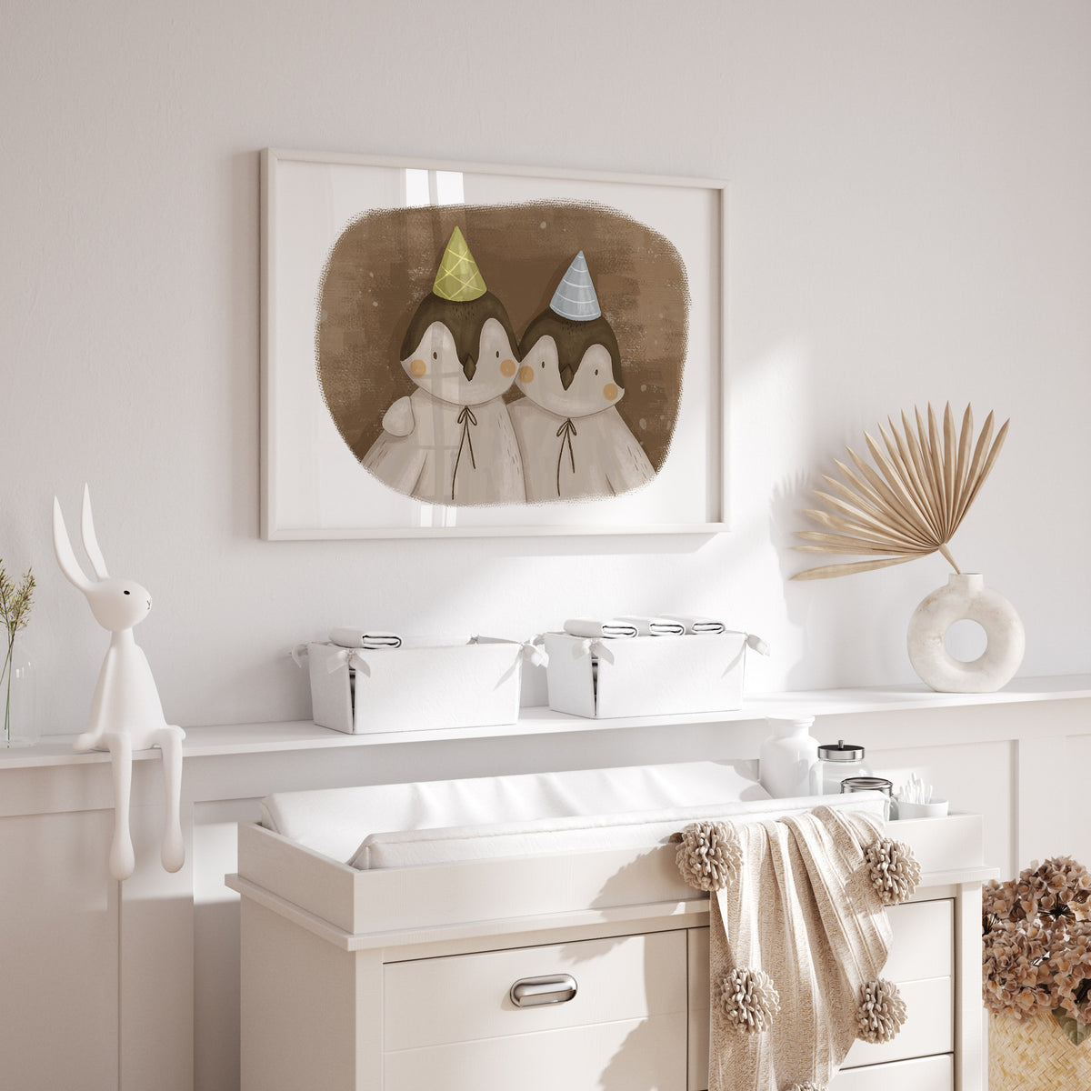 Unit price perPerfect for the woodland or animal themed nursery, this whimsy penguins wall art print makes a perfect new baby gift or add the finishing touches to your own little one's nursery, bedroom or playroom decor. Use as a standalone piece or mix and match with our other designs in this range.
