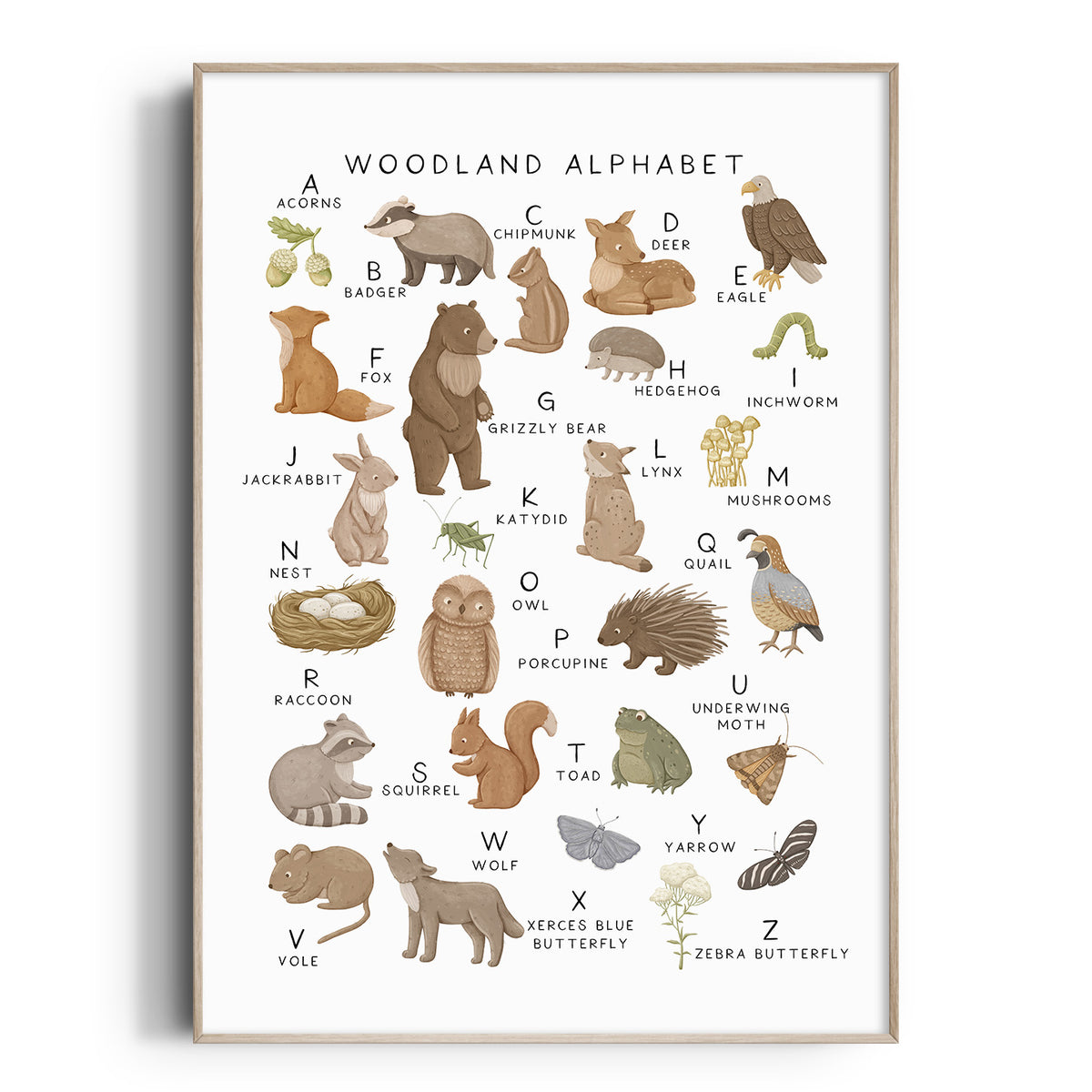 Unit price perThis woodland animal ABC poster makes the perfect addition to your woodland, forest or animal themed nursery, bedroom or playroom decor. A perfect new baby gift in a neutral unisex colourway.