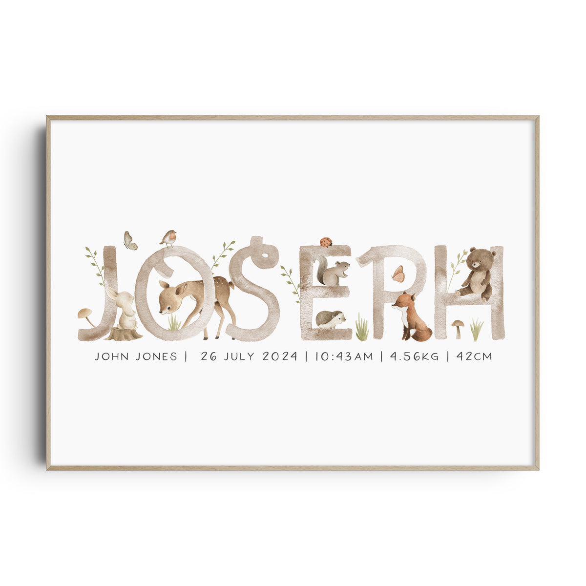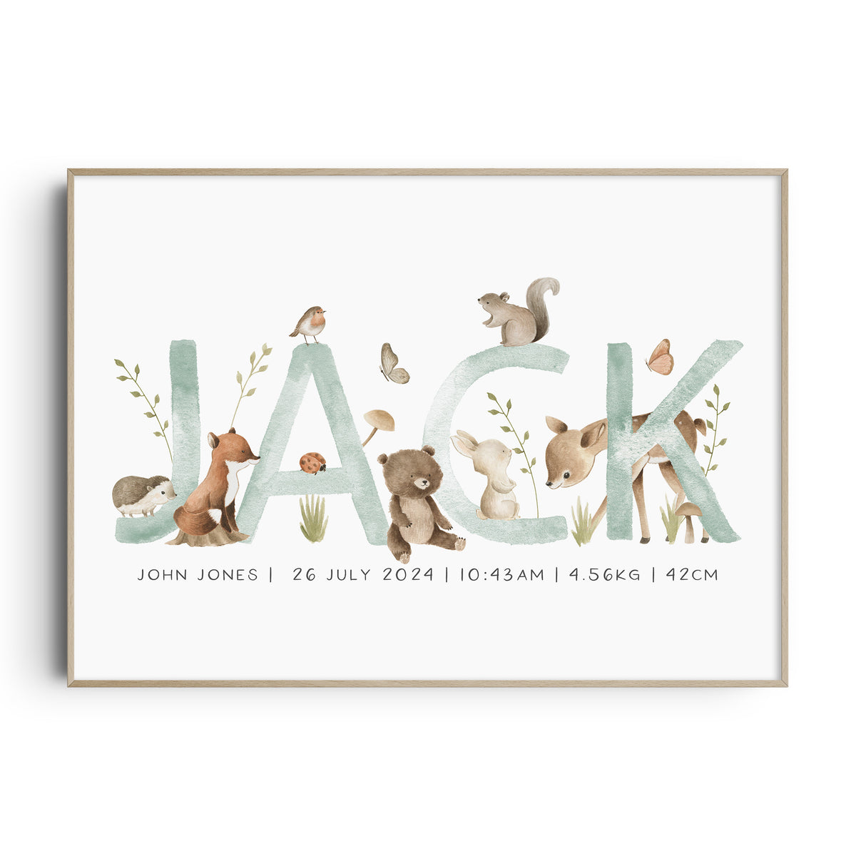 Unit price perThis personalised forest animal name & birth details print is available in four different colour ways. It will make a perfect new baby gift or simply add the finishing touches to your own little boy's woodland nursery, bedroom or playroom decor