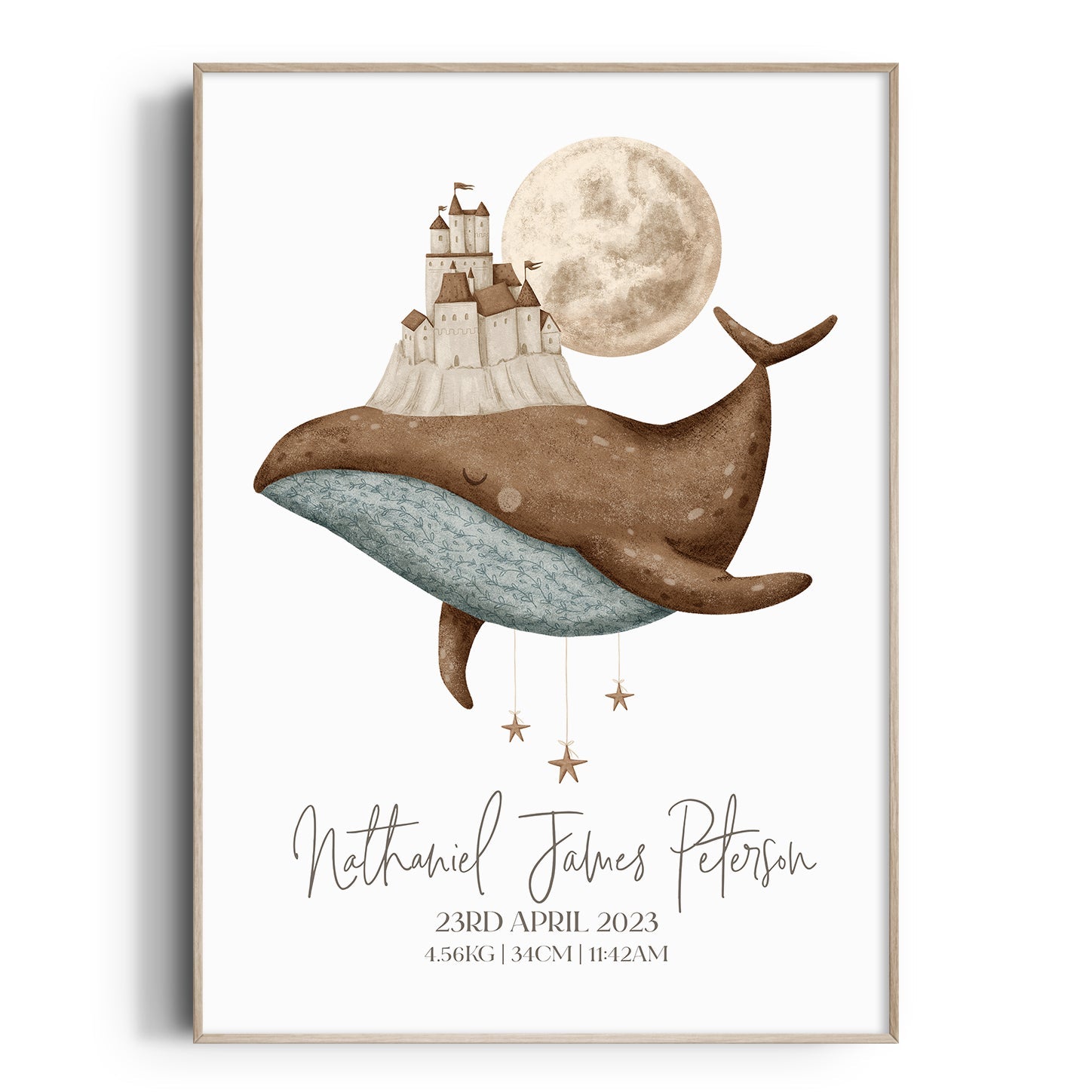 Boho Whale & Castle Birth Print