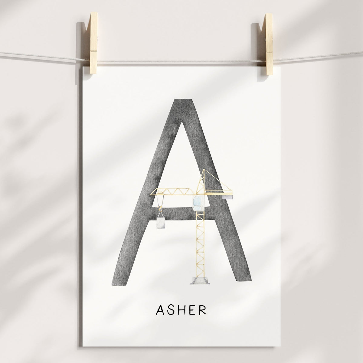 Unit price perPerfect for the construction, vehicle or truck themed nursery, bedroom or playroom, this crane name print is one's with your little one's details. A perfect new baby boy gift, or a great way to add the finishing touches to your own child's nursery or bedroom space.
