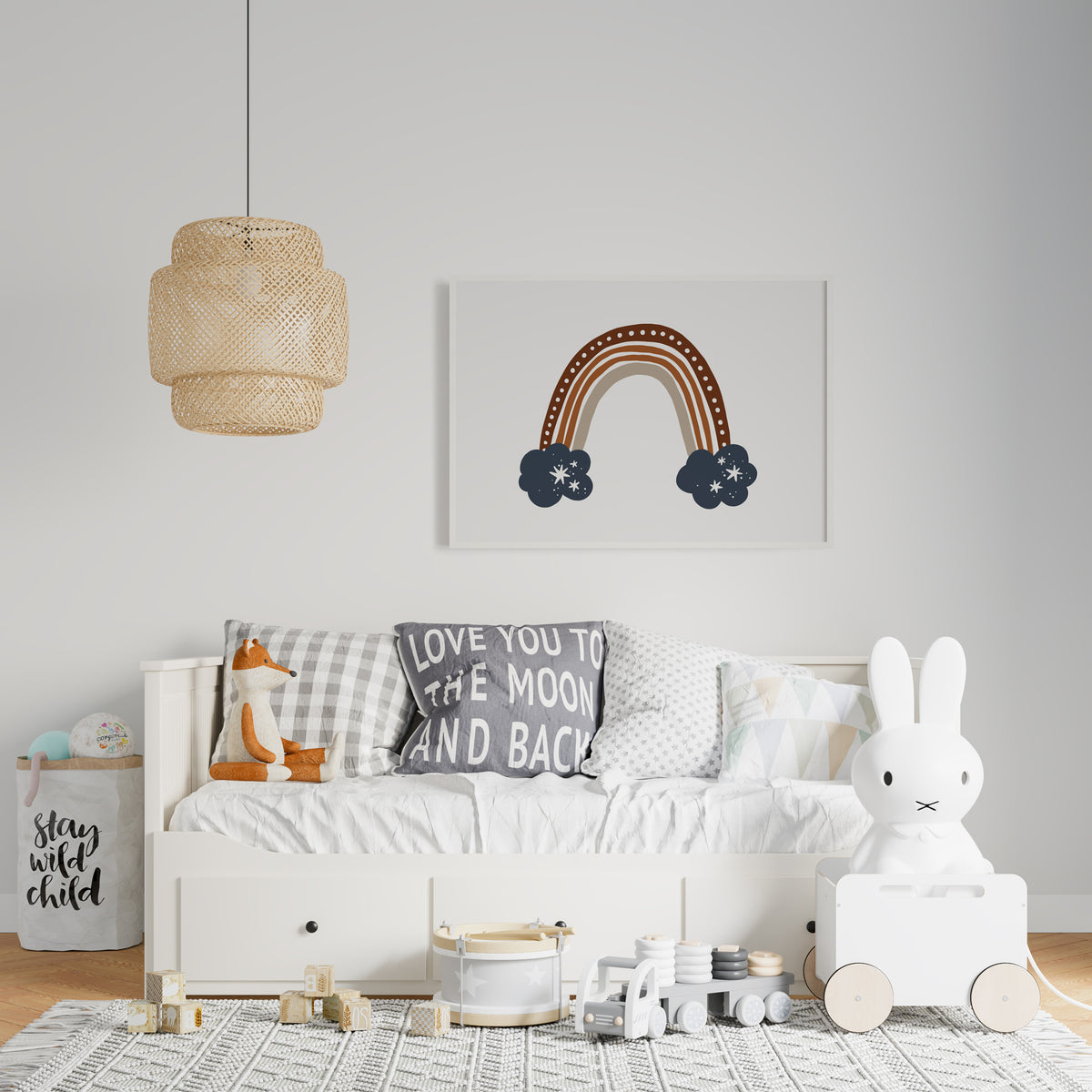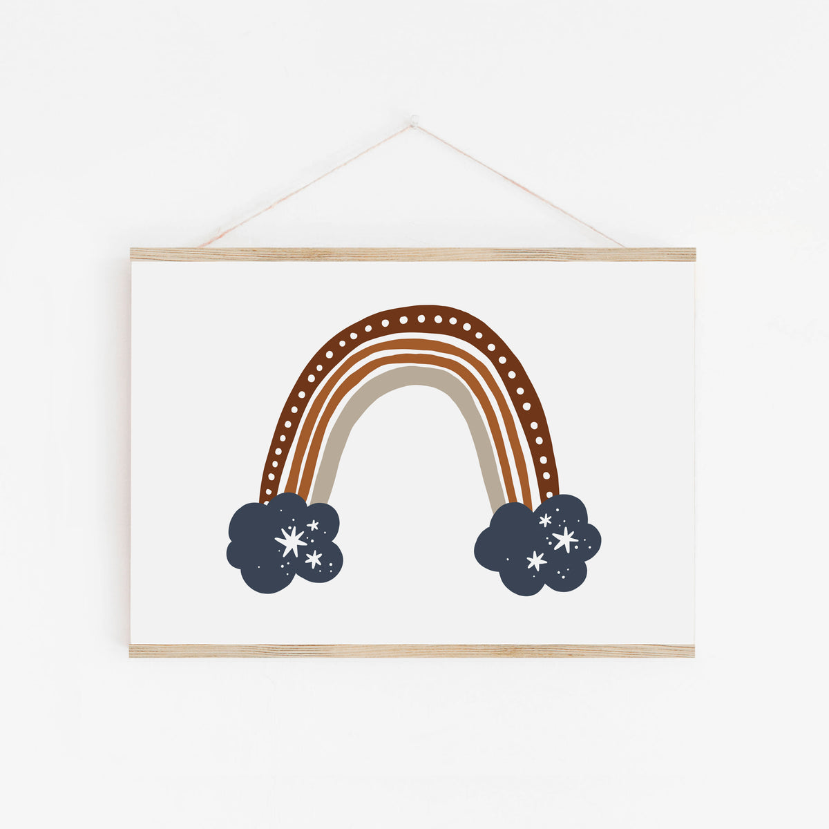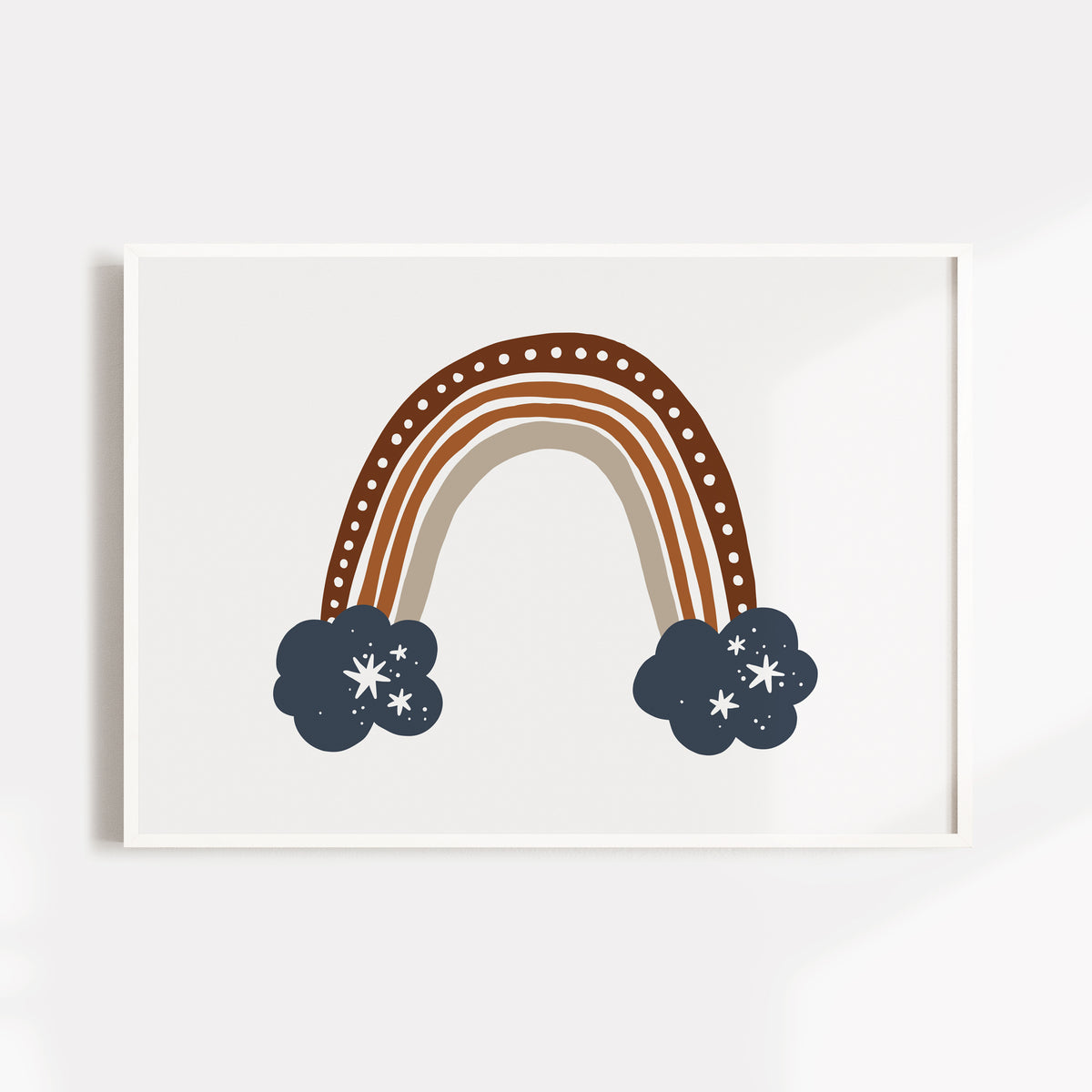 Unit price perThe perfect print for the modern nursery, bedroom or playroom, this scandi inspired rainbow art print features deep earthy tones, suitable for both boys and girls rooms of any age. Also makes a great new baby gift.