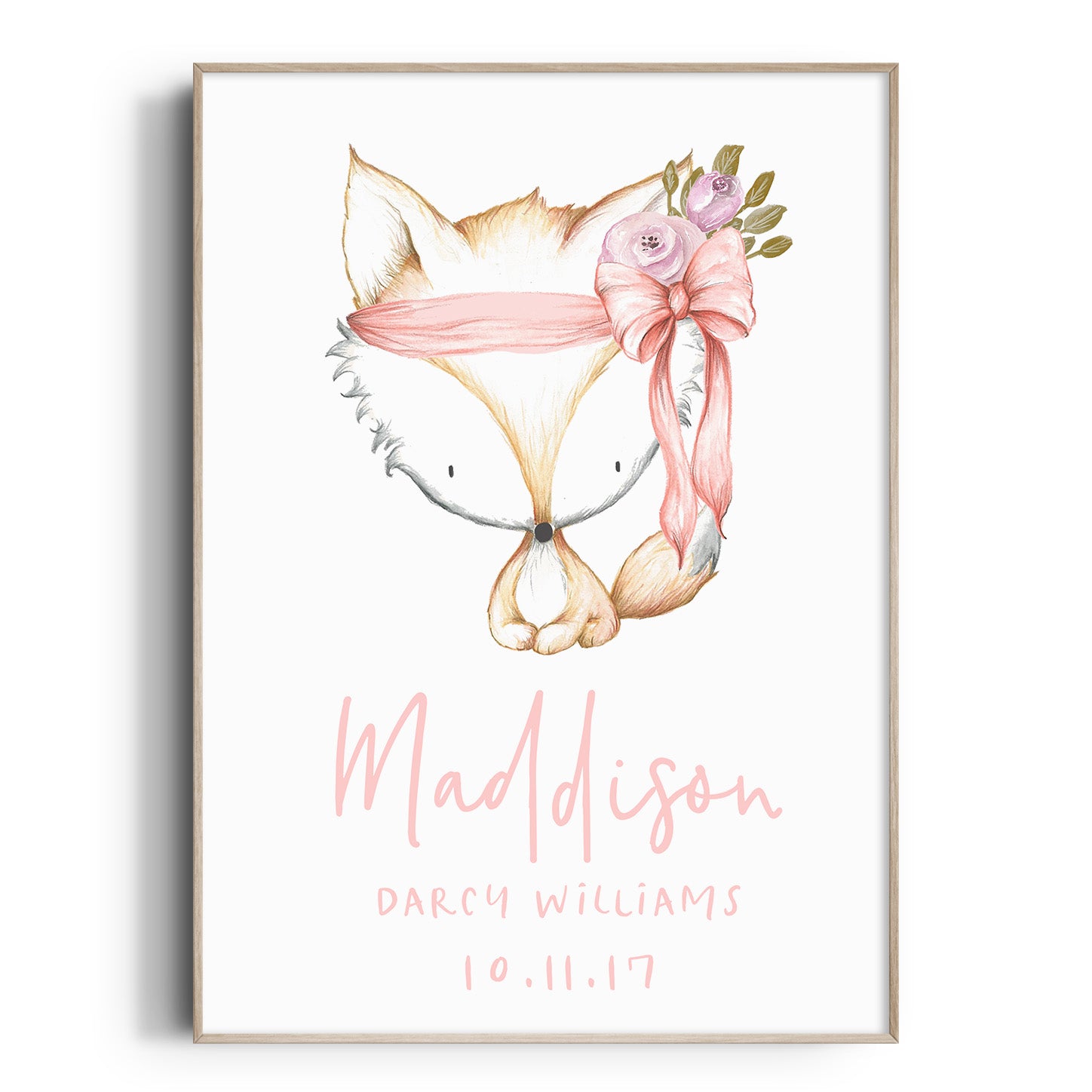 Unit price perOur Woodland Boho Floral Fox wall art birth print is perfect for your little girls woodland inspired nursery or bedroom decor.