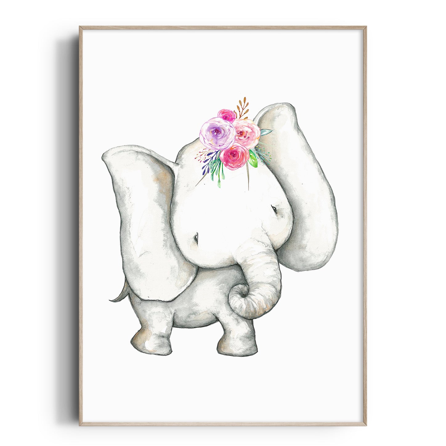 Unit price perWelcome a special addition to the nursery with this gorgeous boho woodland baby elephant print! Featuring a bright, captivating blend of pink and purple florals, it will delight little ones and bring a touch of nature indoors. Create a sweet, magical space for your little one to grow and explore!