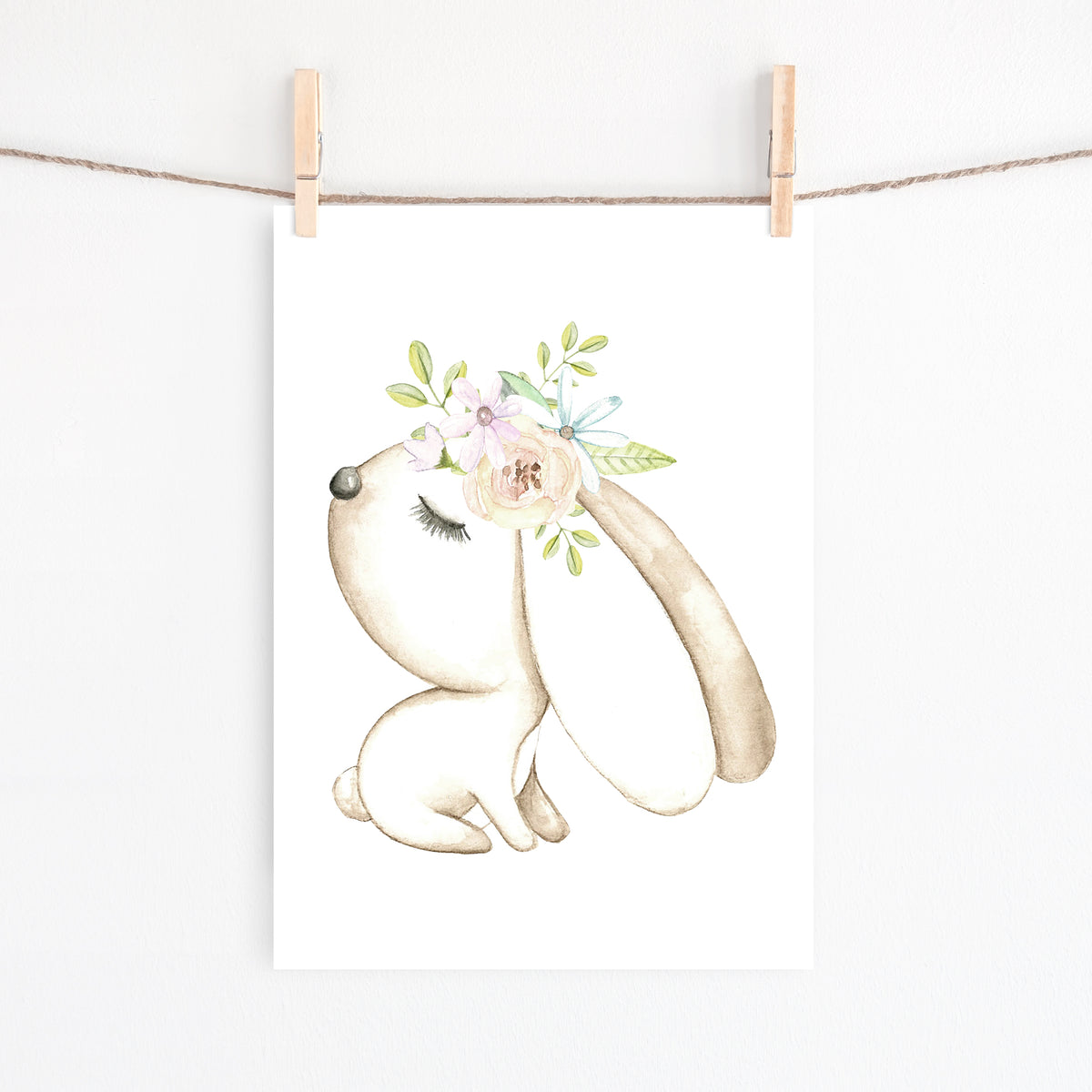This set of three prints features a customised name print and two boho woodland animal prints, all complimented with floral & feather accents.