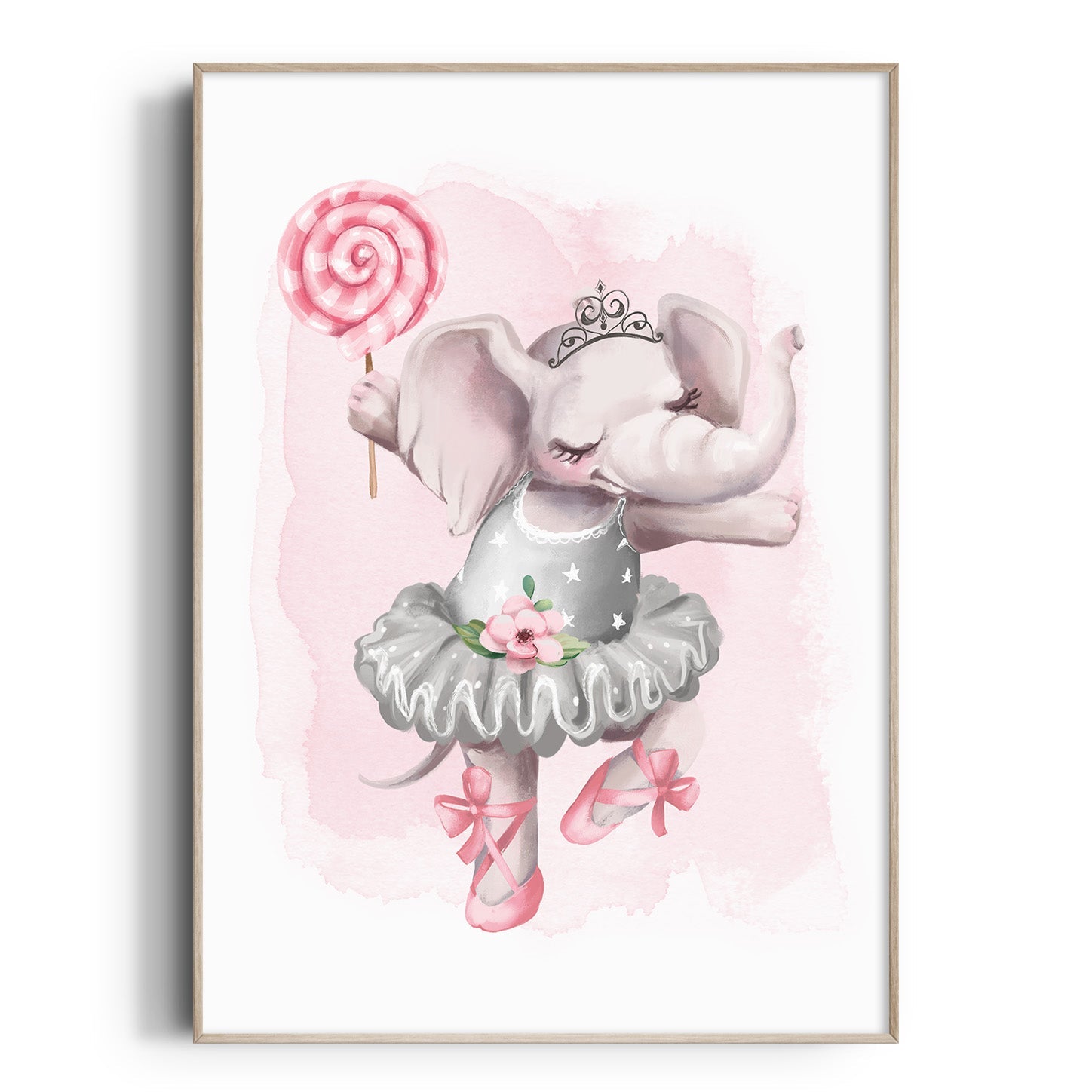 Make a statement with this ballerina wall art print featuring a dancing elephant, it can be paired with our other co-ordinating prints and is perfect for any little girls ballet or dance themed nursery, bedroom or playroom decor.