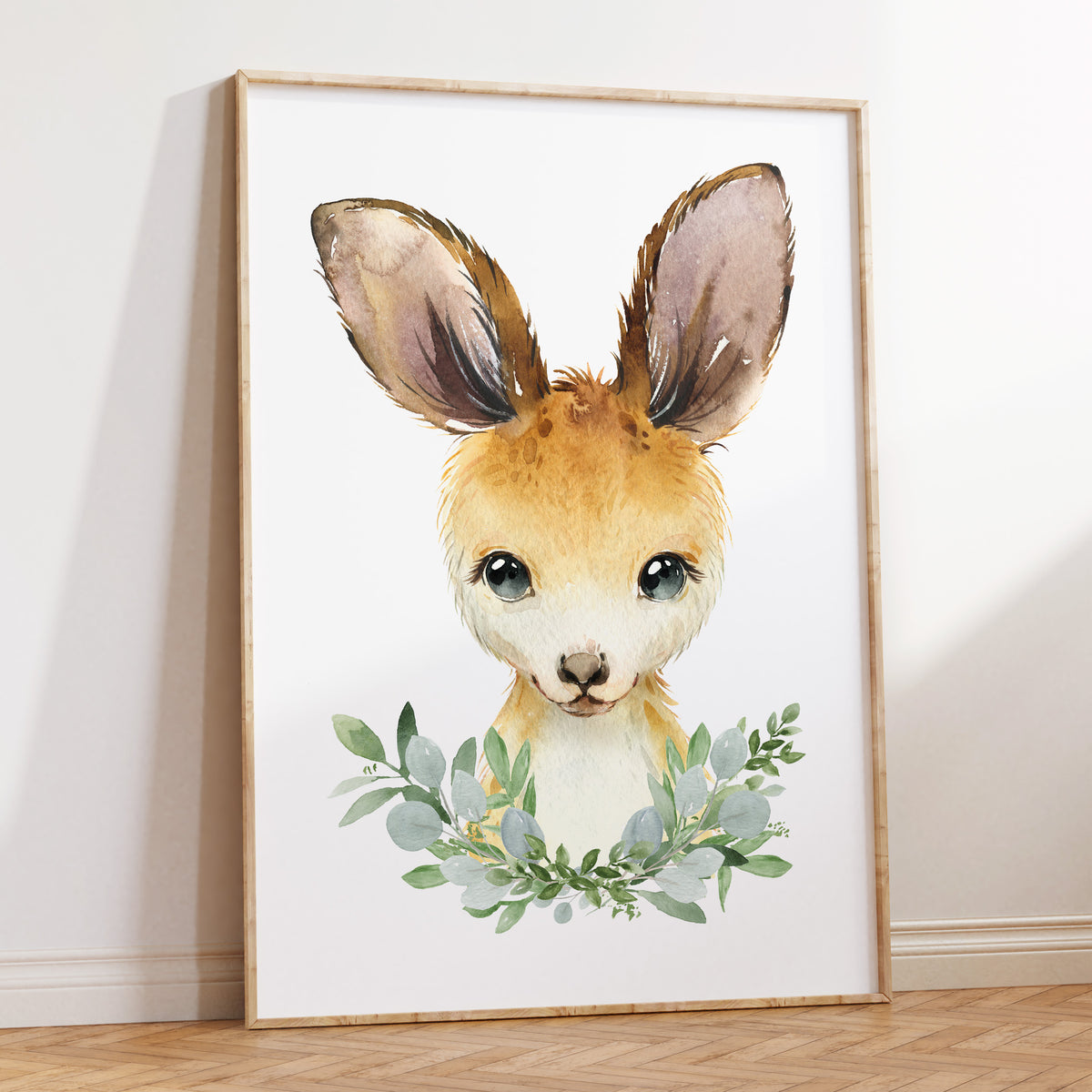 Unit price perThis watercolour baby kangaroo wall art, would make a lovely addition to a nursery, child's bedroom, or playroom. Pair it with one of our many other baby Australian animal prints or use as a stand alone statement.