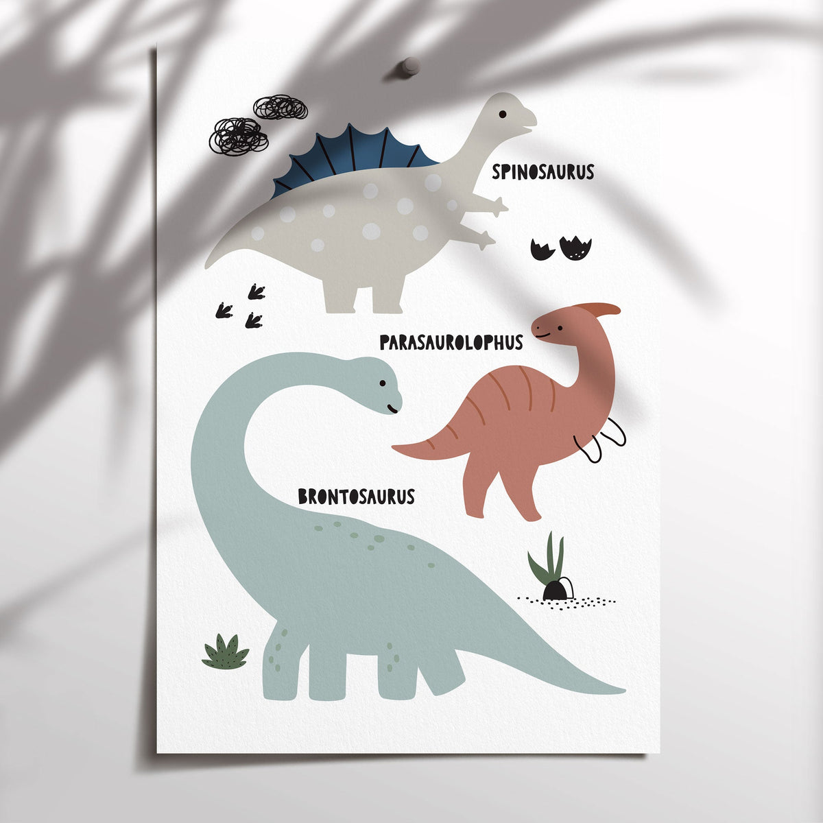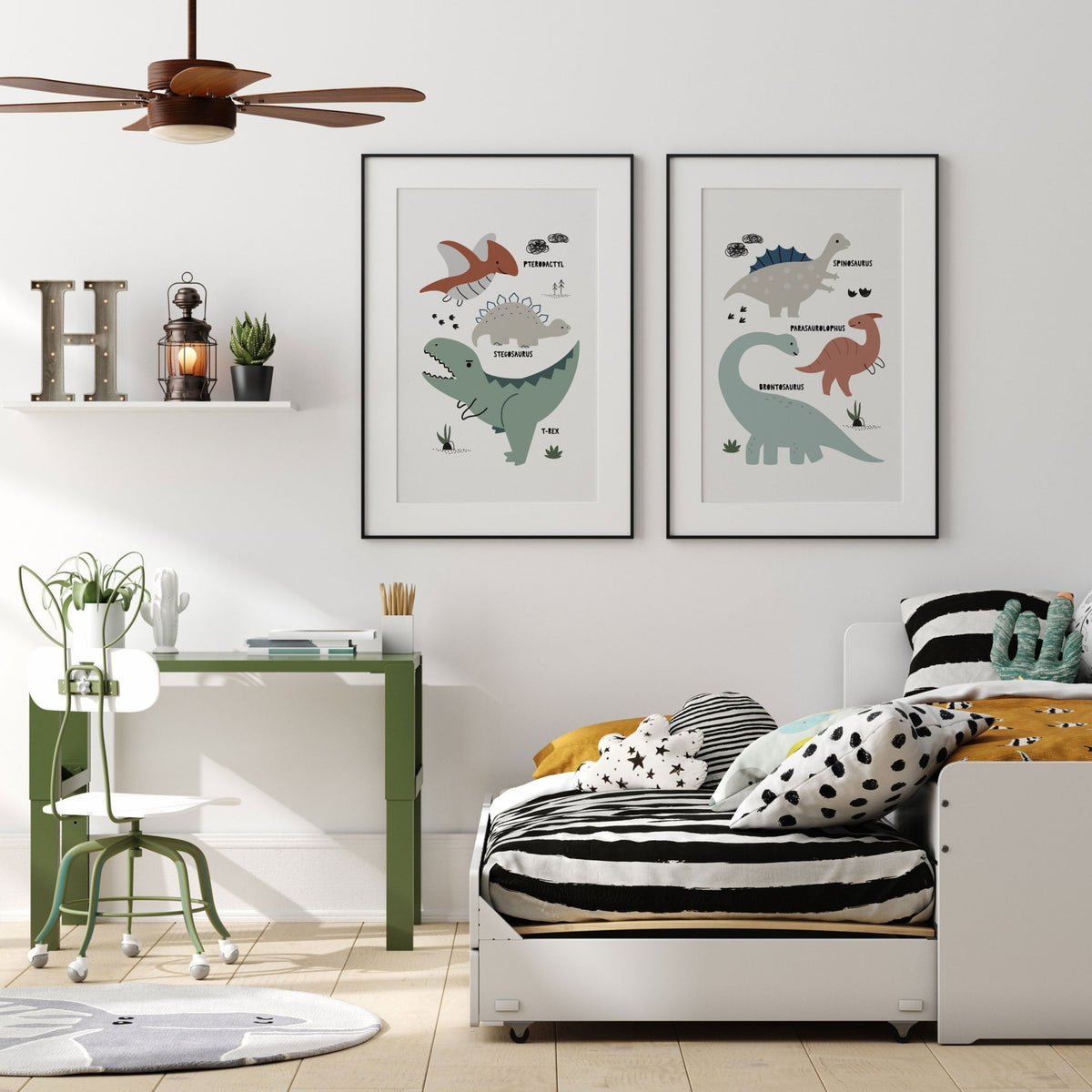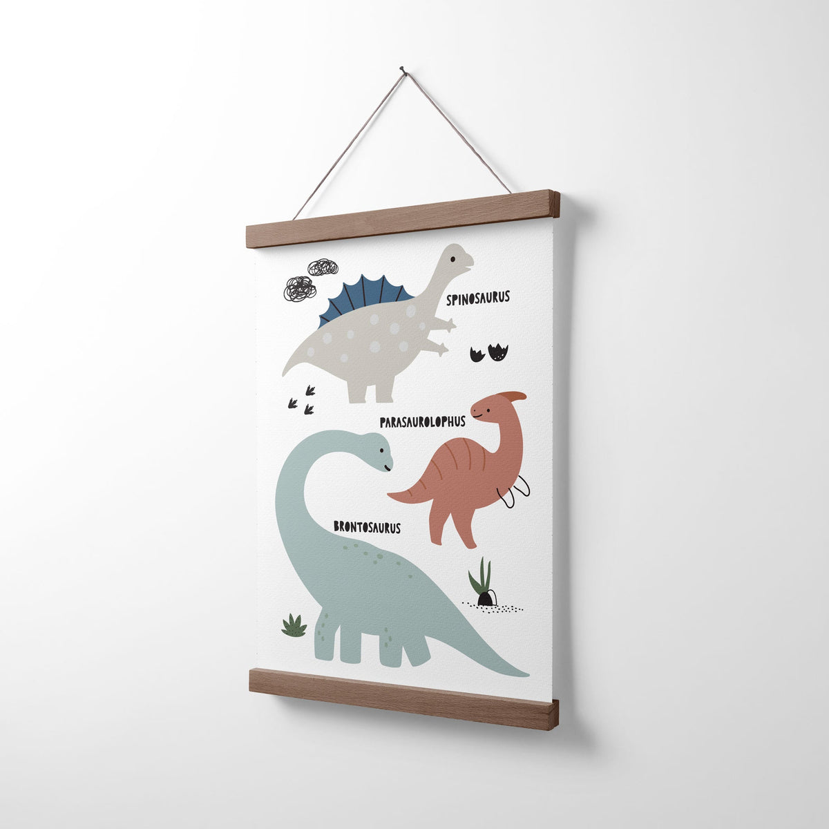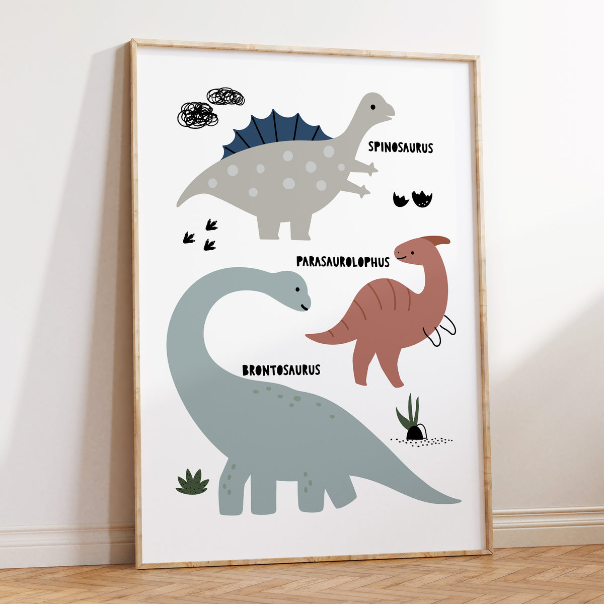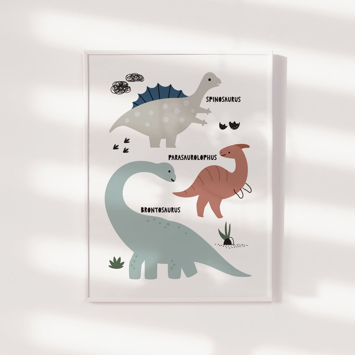 Unit price perThe perfect addition to the prehistoric themed nursery, bedroom or playroom decor is this fun dinosaur chart wall art print featuring a brontosaurus, spinosaurus & parasaurolophus, use a as standalone piece or pair with our other dinosaur themed posters.