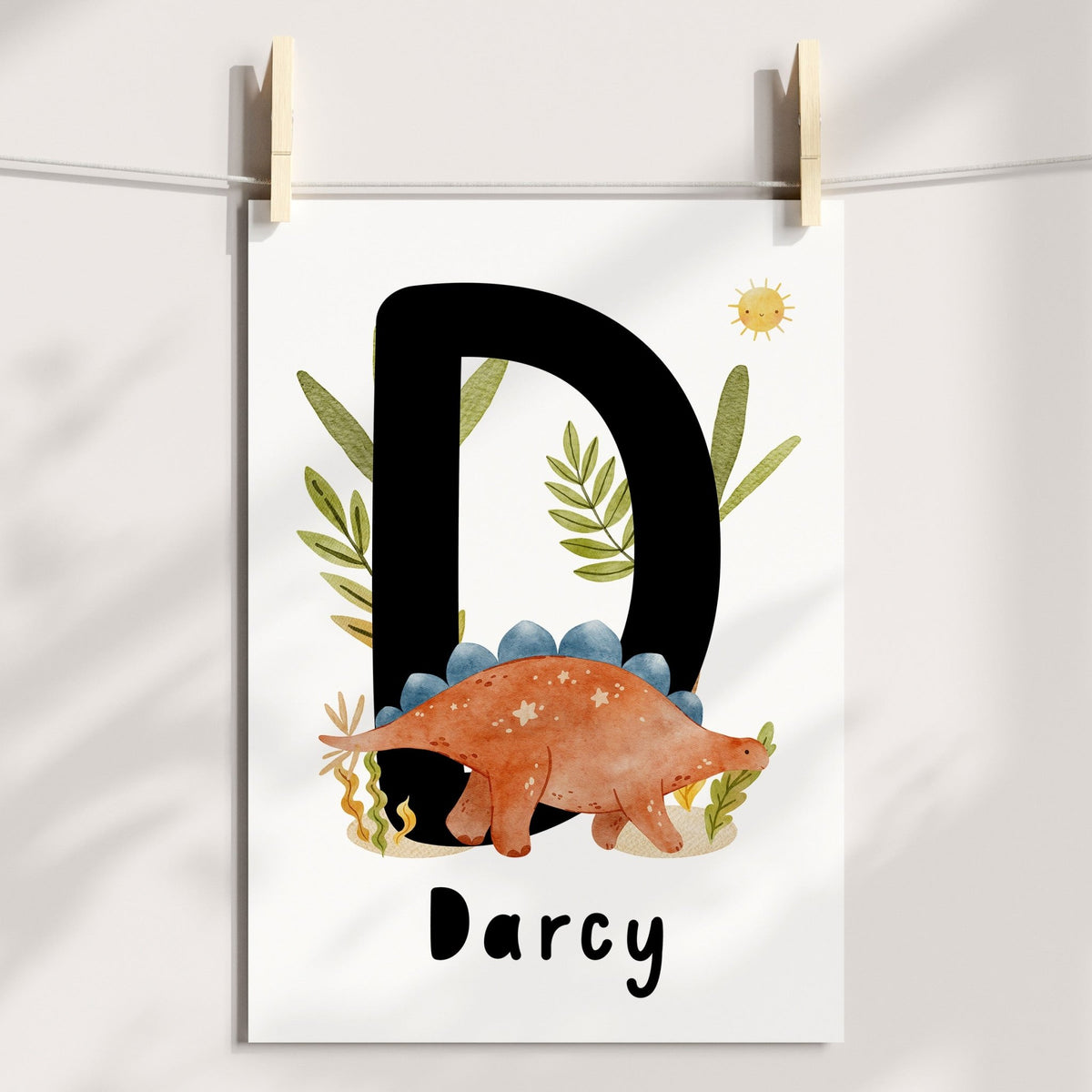 Unit price perThe perfect addition to the prehistoric themed nursery, bedroom or playroom decor is this personalised dinosaur name wall art print featuring a prehistoric stegosaurus.