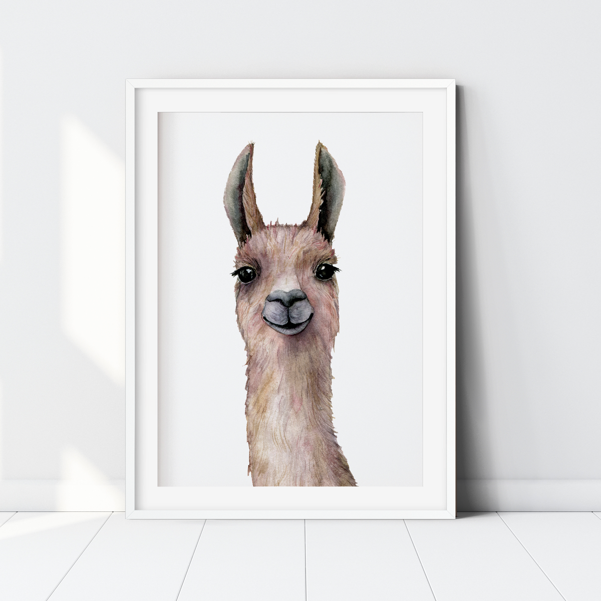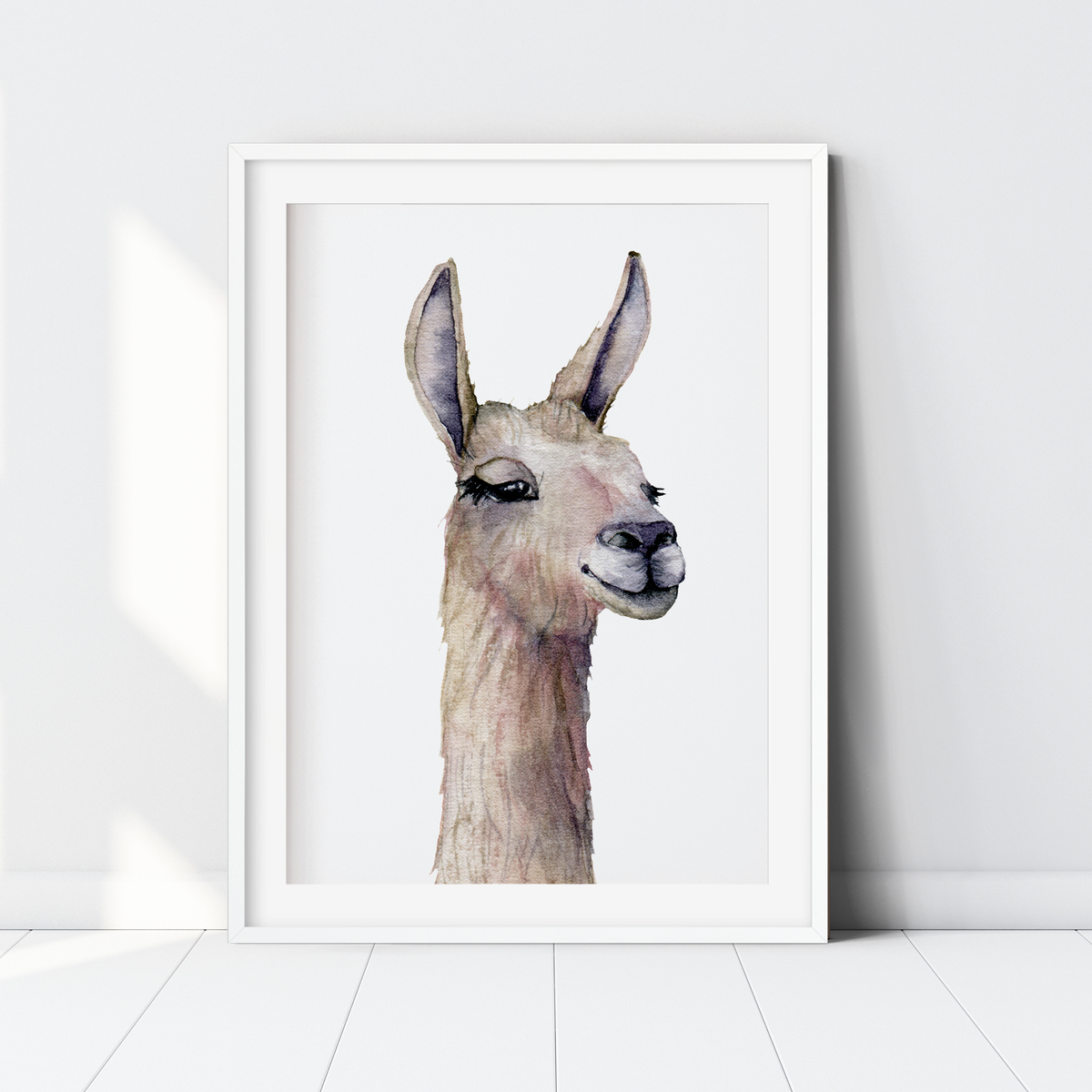 A set of three watercolour prints, featuring two llamas and desert inspired cacti, perfect for the modern southwestern nursery or bedroom.