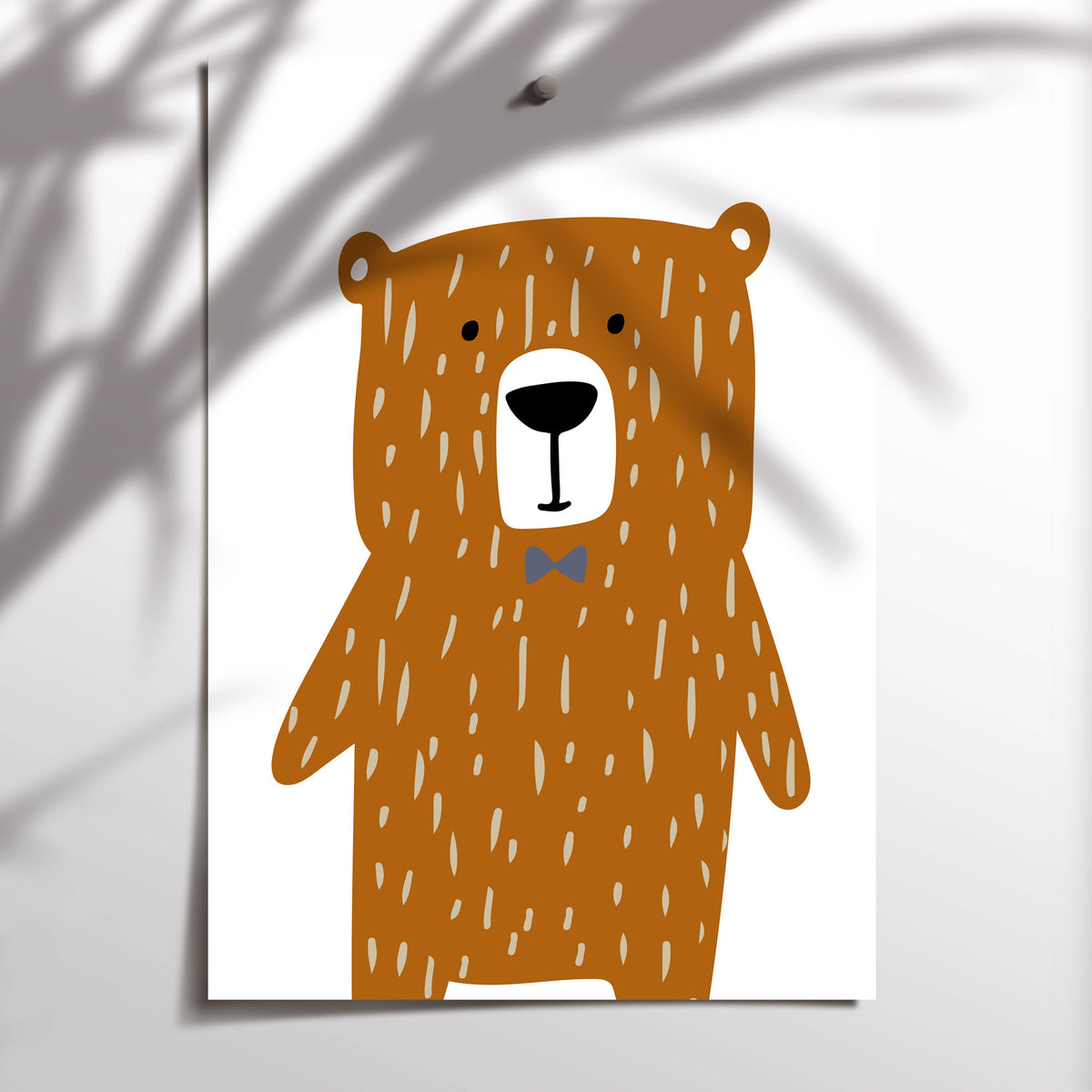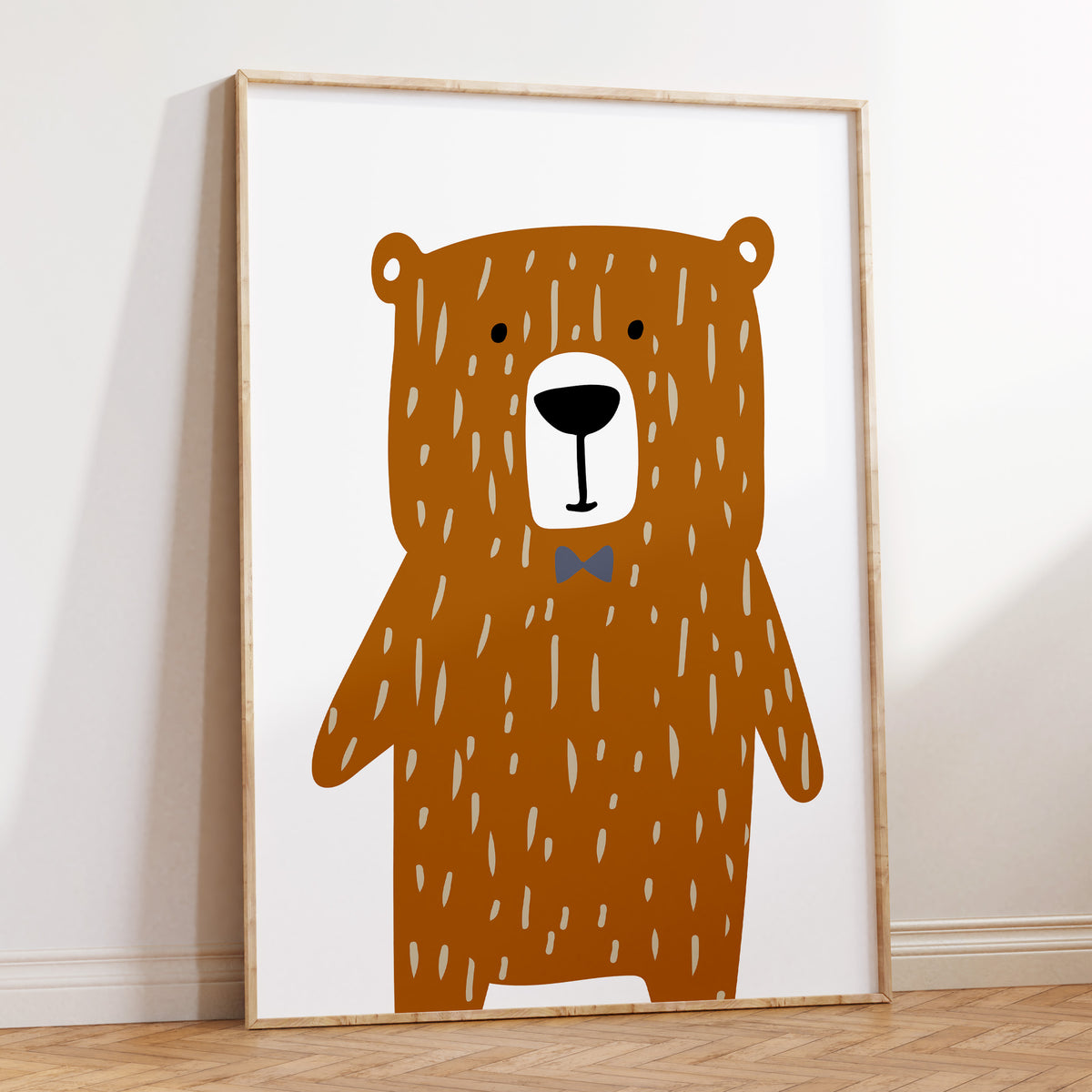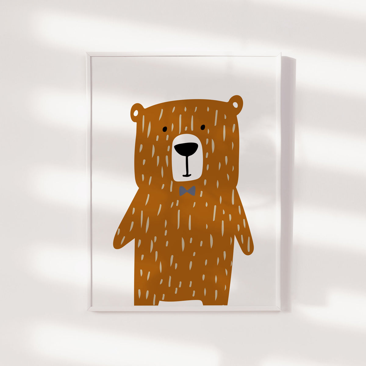 Featuring neutral tones this bear wall art print is perfect for the woodland or forest themed nursery, bedroom or playroom decor. Use as a standalone piece or pair with other co-ordinating prints.