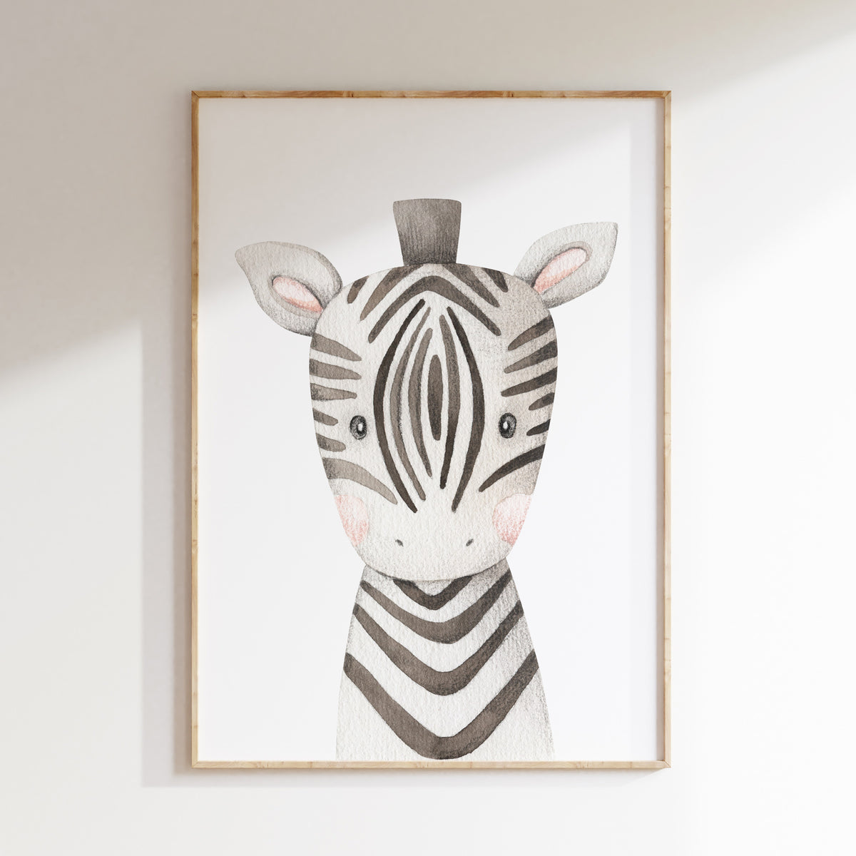This watercolour zebra wall art print will make the perfect addition to your child's safari or jungle animal themed nursery, bedroom, or playroom decor. Pair it with one of our many other baby animal prints or use as a stand-alone statement.